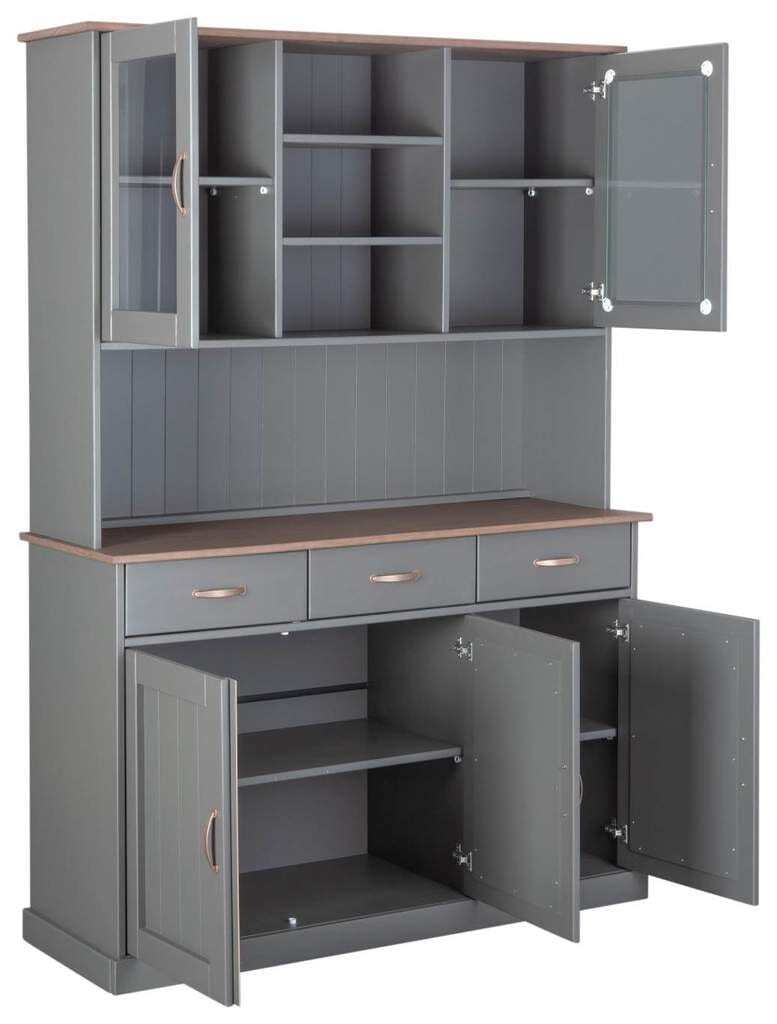 Buffet Vitrine LUZERNA 6.1 mit 5 Türen Kiefer Grau Sepia lackiert