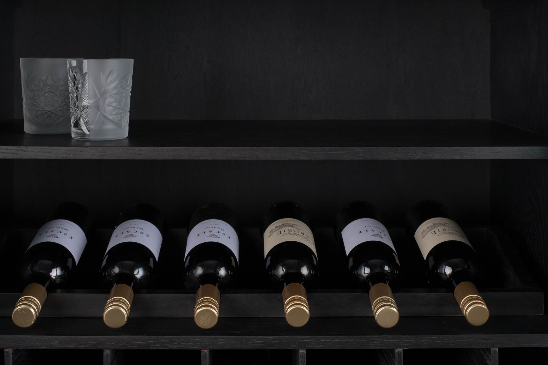 - Darunter 14 Fächer für Flaschen und 1 Schublade