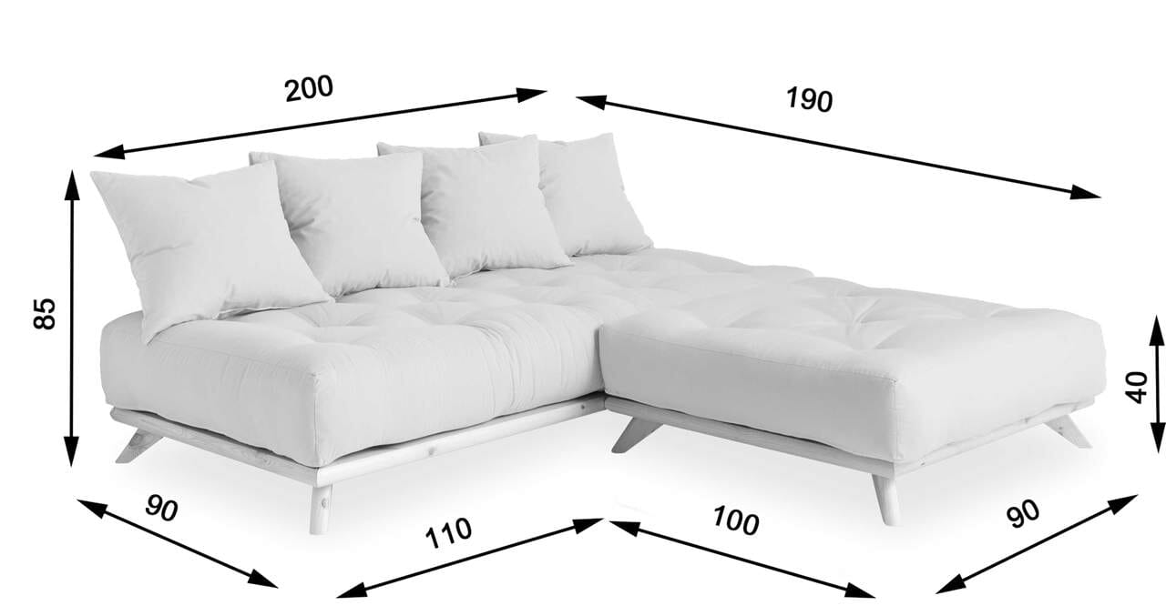 Sofa Ecksofa SENZA, aus DAYBED mit Hocker, Gestell Kiefer natur lackiert