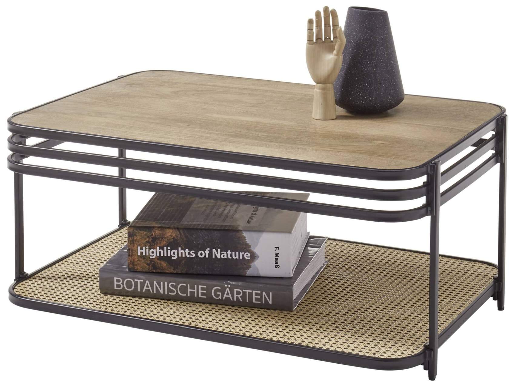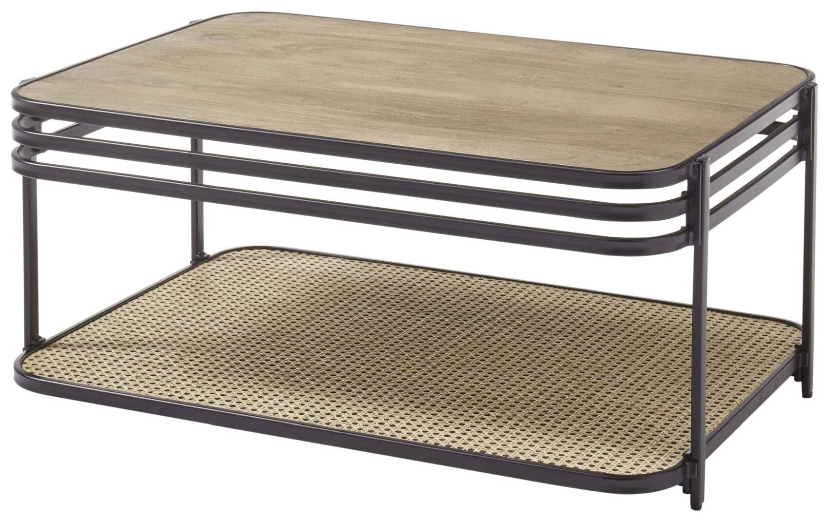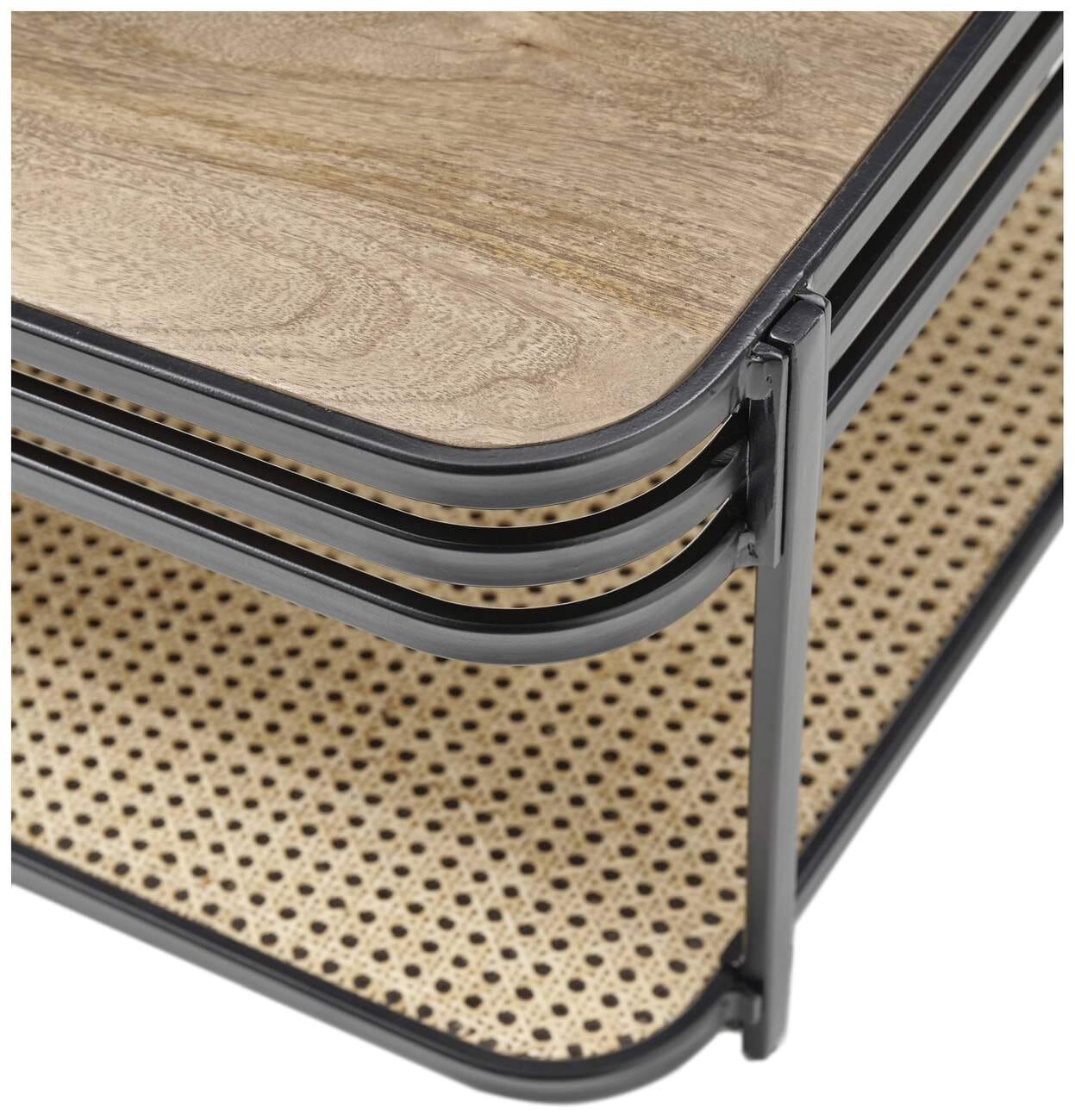 Couchtisch BOMI Platte aus Mangoholz, Metallgestell mit Geflecht
