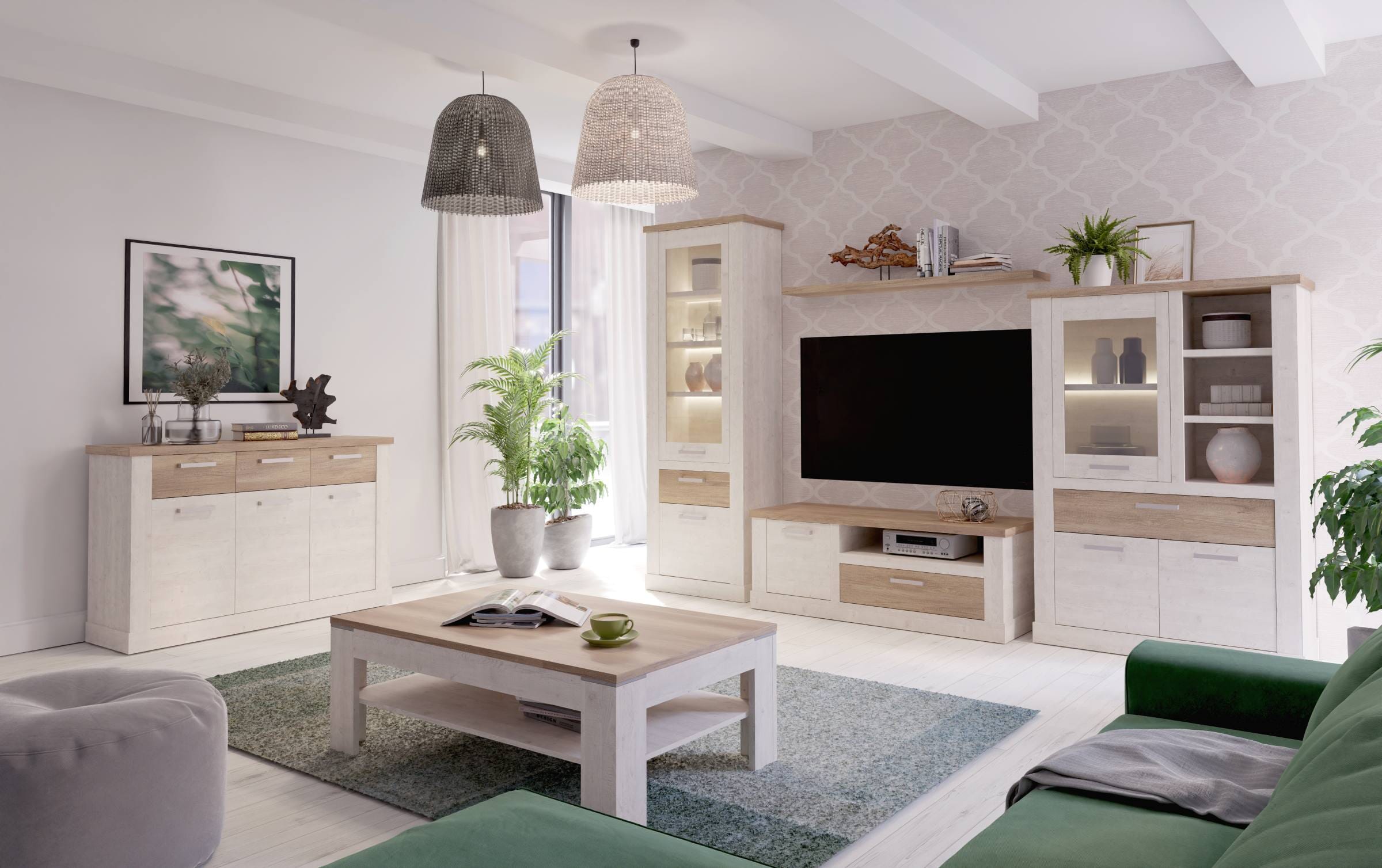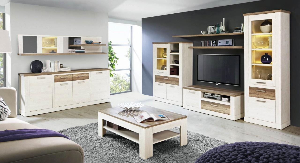 Als Material wurde Spanplatte bzw. MDF gewählt, die sich durch ihre robuste Qualität auszeichnen, die an dieser Stelle auch wirklich angebracht ist. Die Beschichtung macht aus dem Wohnzimmer-Möbel ein ansehnliches, schönes Stück im modernen Landhausstil!