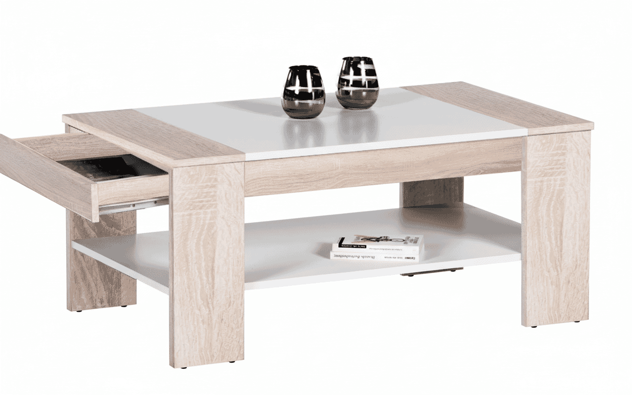 Couchtisch FINLEY PLUS 100 x 58 cm, Sonoma Eiche und Weiß