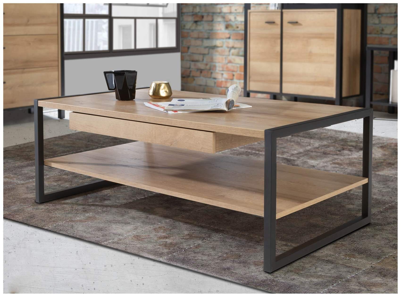 Couchtisch HIGH ROCK 110 x 60 cm Riviera Eiche Nachbildung / Schwarz