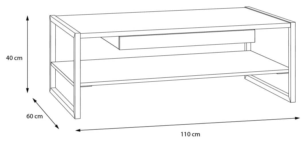 Couchtisch HIGH ROCK 110 x 60 cm Riviera Eiche Optik / Schwarz, Forte