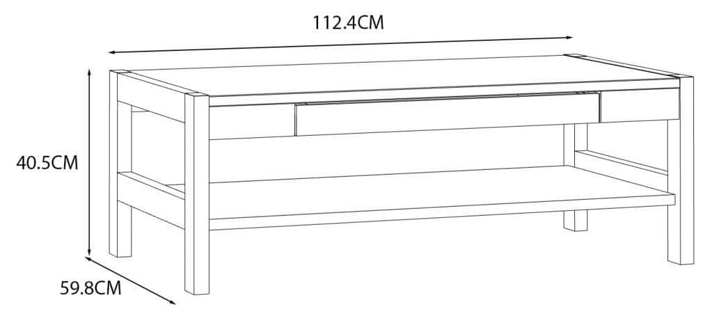Erst beim zweiten Hinsehen fällt die breite Schublade auf, die in die großzügige Tischplatte integriert ist. Endlich ein Ort, wo TV-Fernbedienung, Telefon und andere elektronische Kleingeräte ordentlich aufgeräumt werden können! Aber auch für ein hübsches Platzdeckchen, die Lesebrille oder eine Tafel Lieblingsschokolade findet sich hier Platz.