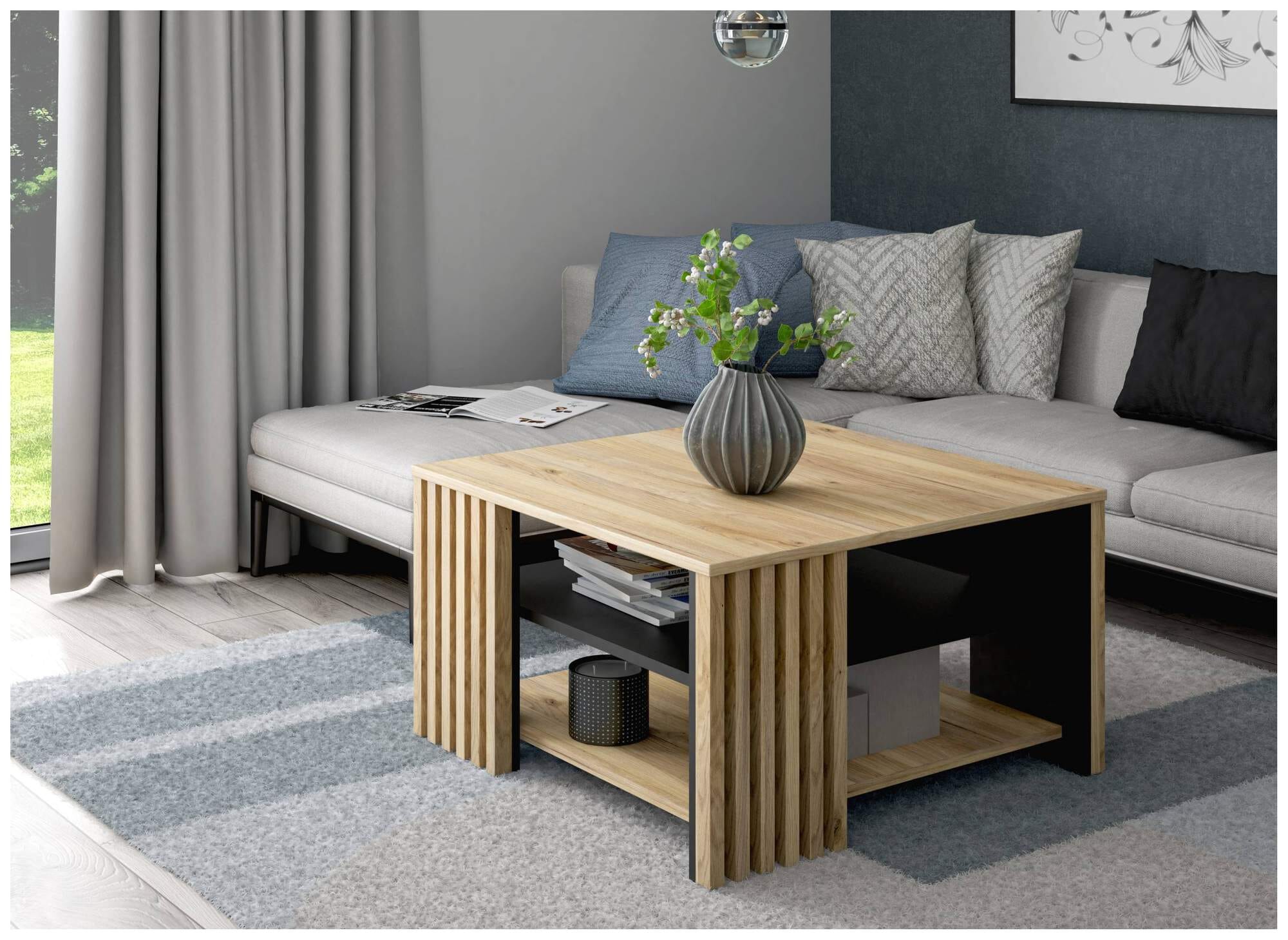 Couchtisch JOAKIMIS 80 x 80 cm Schwarz / Mauvella Eiche Optik, Forte