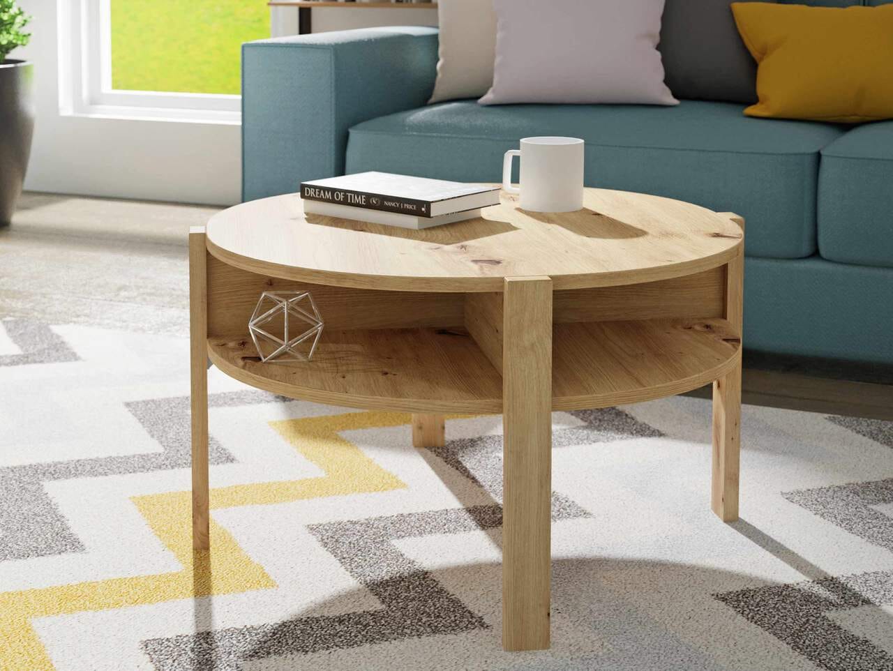 Mit seiner runden Form ist dieses Möbelstück ein verbindendes Element in Ihrem Wohnbereich und fügt sich mühelos in unterschiedliche Einrichtungsstile ein.