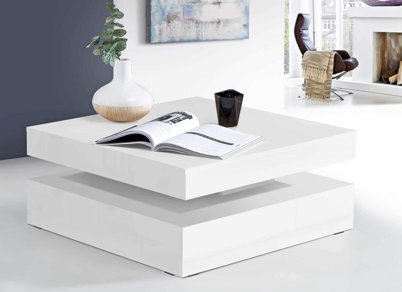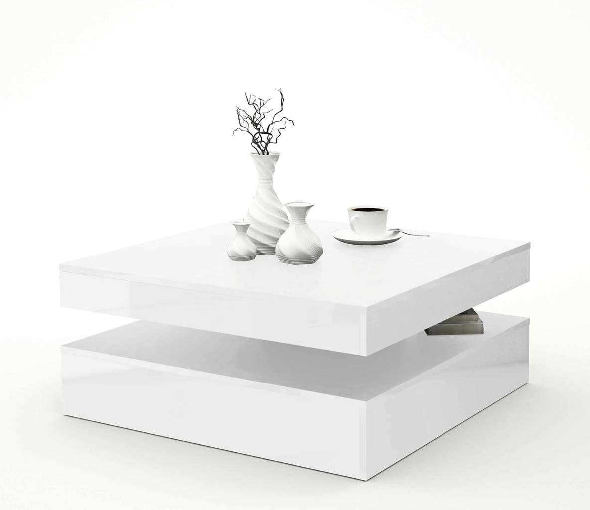 Couchtisch TURN 78 x 78 cm drehbare Platte Optik Weiß glossy von Forte