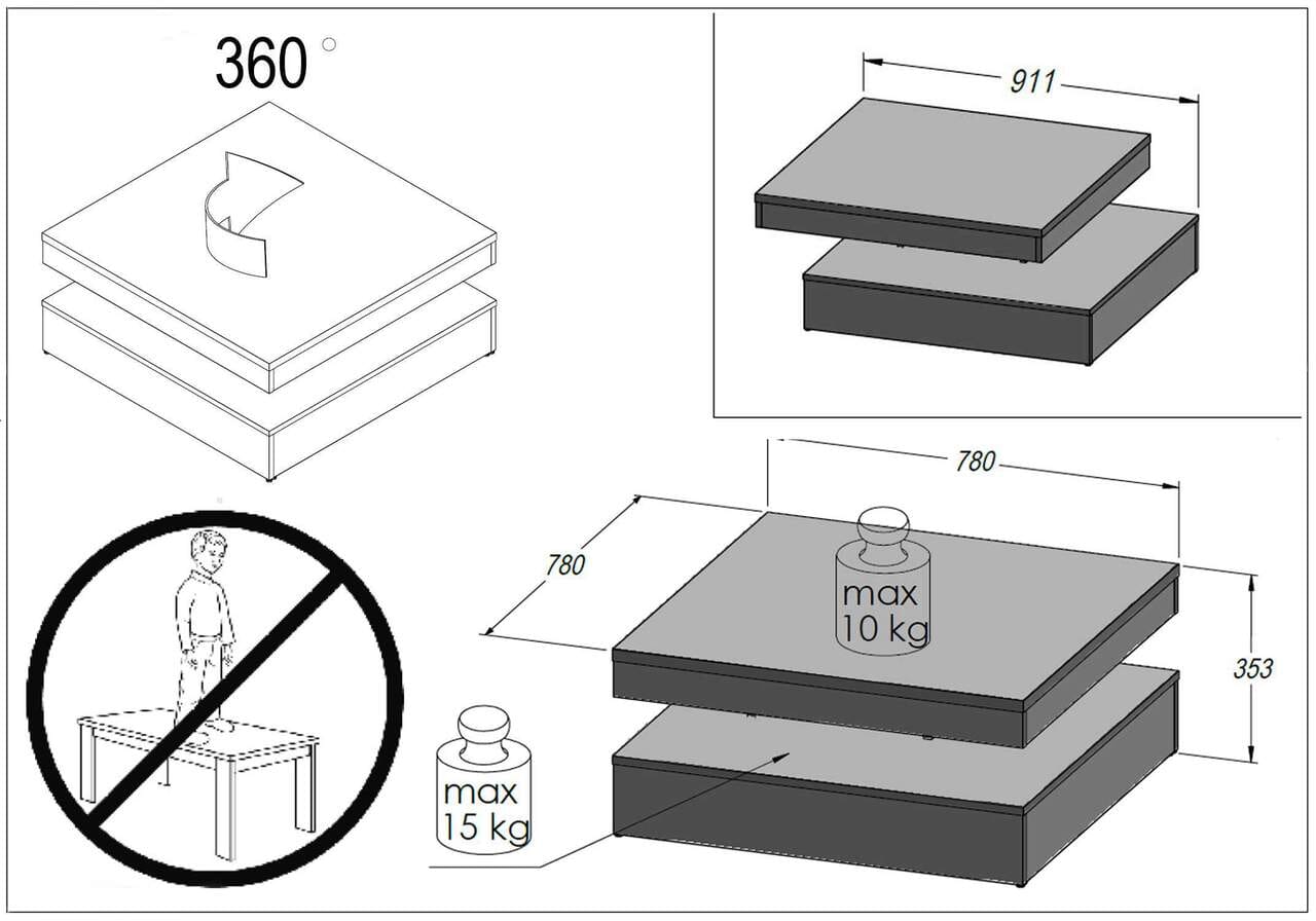 Der Tisch kann was. Und wenn Sie die Oberplatte etwas anschieben und drehen, dann wird diese um wenige Zentimeter zum Unterteil versetzt. Und dass er danach noch immer auf zwei Ebenen agiert, macht ihn auch zu einem sehr nützlichen Gesellen. Egal ob Sie einen Actionfilm ansehen oder eine romantische Schnulze Sie zu Trähnen rührt. Der Platz für Erdnüsse, Cola oder Taschentücher ist ausreichend vorhanden.