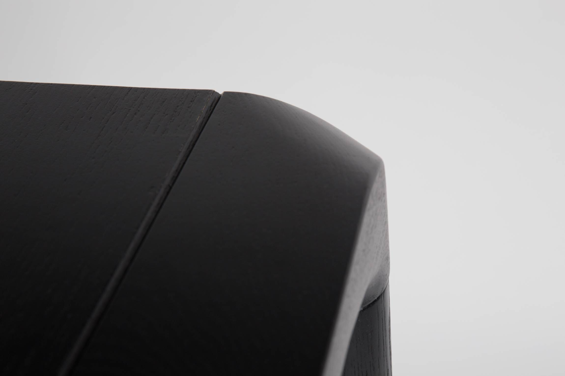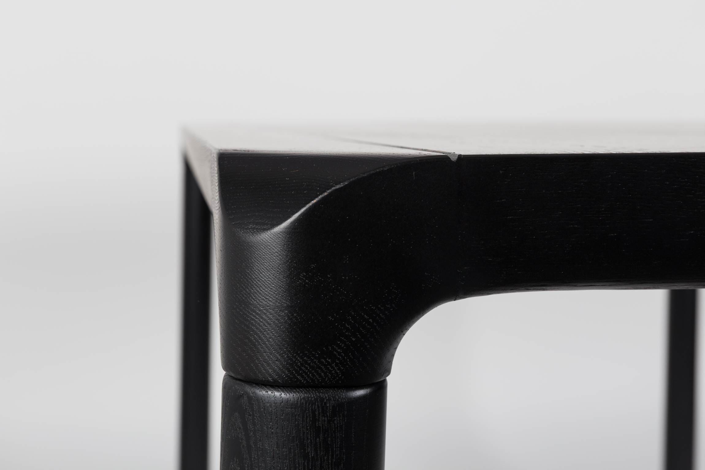 Das Material, Esche schwarz lackiert, wirkt nicht nur edel, es ist auch edel. Der Rand und die Beine bestehen aus massiver Esche. Das wirkt keineswegs trutzig, sondern wunderbar anmutig. Die Art, wie die Kanten ineinander greifen, das Holz mit seinen Maserungen - dieser Tisch ist ein Traum gewordenes Stück Natur für den Wohnbereich.