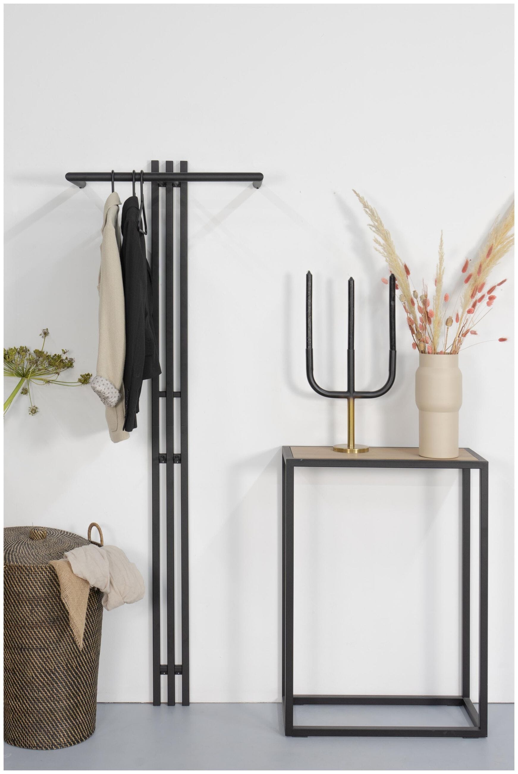 Durch ihren geradlinigen Stil mit einer großzügigen quer angebrachten Stange setzt die Garderobe Akzente und ist vielseitig mit modernen Einrichtungsgegenständen wie Spiegel oder Kommoden kombinierbar.