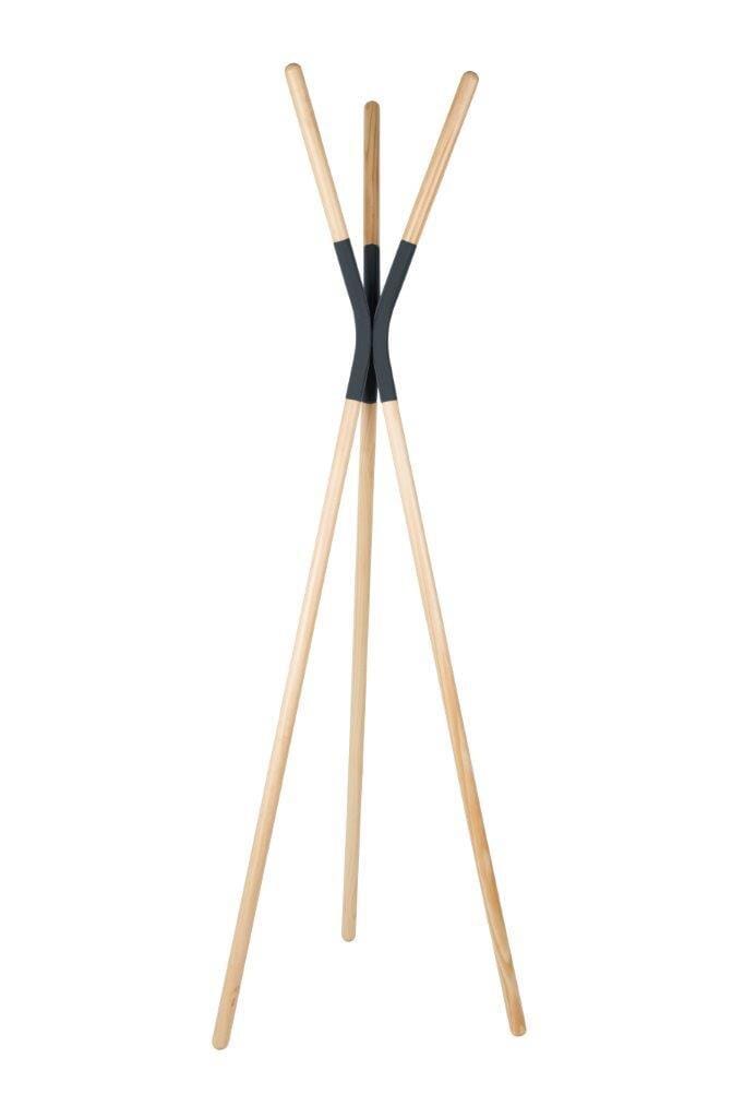 Bis zu 23 kg Gewicht erträgt dieser Design-Ständer. Die Stäbe bestehen aus Kiefernholz. Es wurde lackiert und steht so als unempfindliches Material zu Ihrer Verfügung. Das Gelenk bildet dazu einen schönen Kontrast. Es handelt sich um Metall, das Pulver beschichtet wurde. Was gut klingt, ist es auch. Dieses fragil wirkende Accessoire wird in Ihrem Flur zu einem Hingucker, der Sie ein wenig in die Kindheit zurück führt.