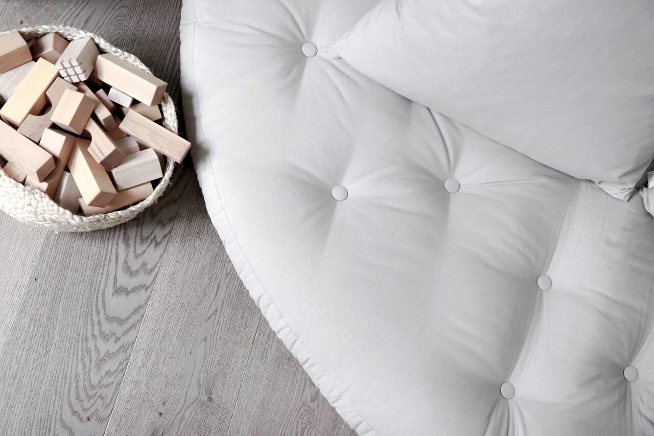Futonsessel NIDO. Legen Sie einfach zwei Nido´s offen zusammen. Schon haben Sie eine runde Liegefläche.