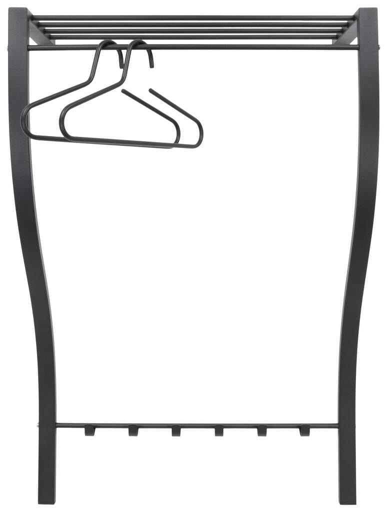 Vor allem die Kleinsten werden das vielseitige Wohn-Accessoire lieben: An den sechs unteren Metallhaken können sie in idealer Reichweite für Kinderhände ihre Jäckchen, Mäntelchen und Kindergartentaschen ordentlich aufräumen. Selbstverständlich finden hier bei Bedarf auch Handtaschen, kurze Blazer oder verschiedene originelle Basecaps Platz. Hüte, Schals oder auch dekorativ angeordnete Zimmerpflanzen lassen sich auf der obersten Ablage aus runden Metallstangen unterbringen. Die etwas tiefer montierte Kleiderstange nutzen Sie am effektivesten mit verschiedenen Kleiderbügeln Ihrer Wahl - ob passend in schwarzem Stahl oder wahlweise auch in bunten Kontrastfarben.