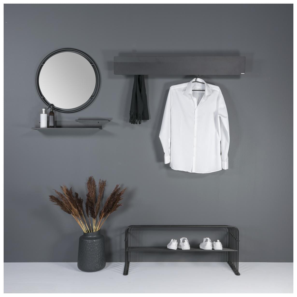 Entdecken Sie das stilvolle FOLIO 70 Wandregal von Spinder Design, das mit seiner eleganten schwarzen Stahlkonstruktion in jedem Raum ein Highlight setzt. Perfekt für moderne Wohnräume, bietet es nicht nur Funktionalität, sondern auch ein ästhetisches Statement.
