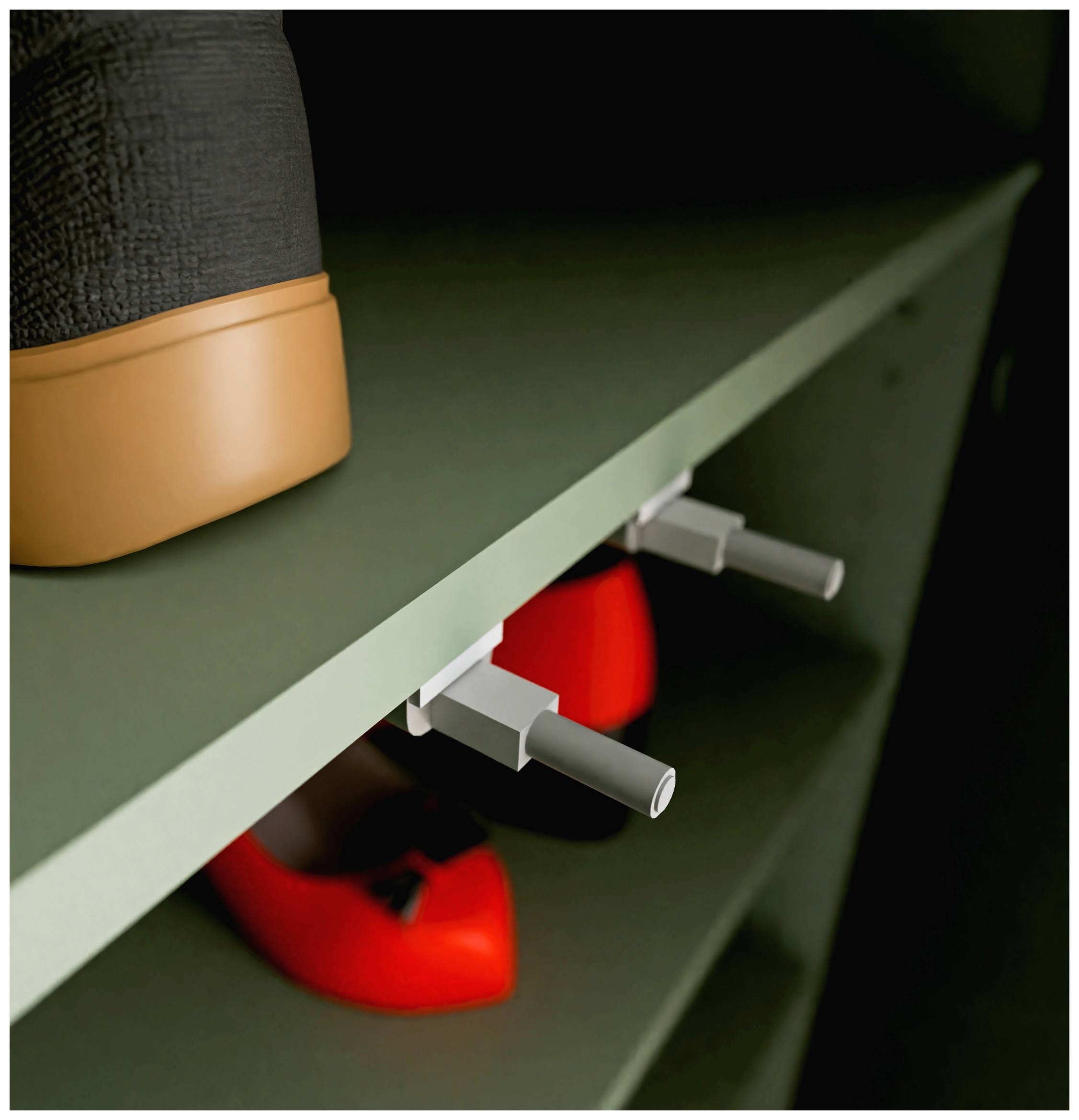 Doch auch im Inneren hat der Schrank ALICE SPRINGS eine Menge zu bieten: Mehrere Einlegeböden in Korpusfarbe bilden das passende Parkett zum Abstellen oder - legen Ihrer Unterlagen und Bücher oder anderer Utensilien. Natürlich ist der schmale Schrank auch in Ihrer Garderobe oder im Ankleidezimmer fast nicht weg zu denken. Als Schuhschrank finden Ihre Sneeker, Turnschuhe oder Puschen endlich einen idealen Platz. Erwähnenswert ist die Tatsache, dass der Schrank eine "offene" Rückwand besitzt. Dieser wenige Zentimeter breite Schlitz dienst als Entlüftung.