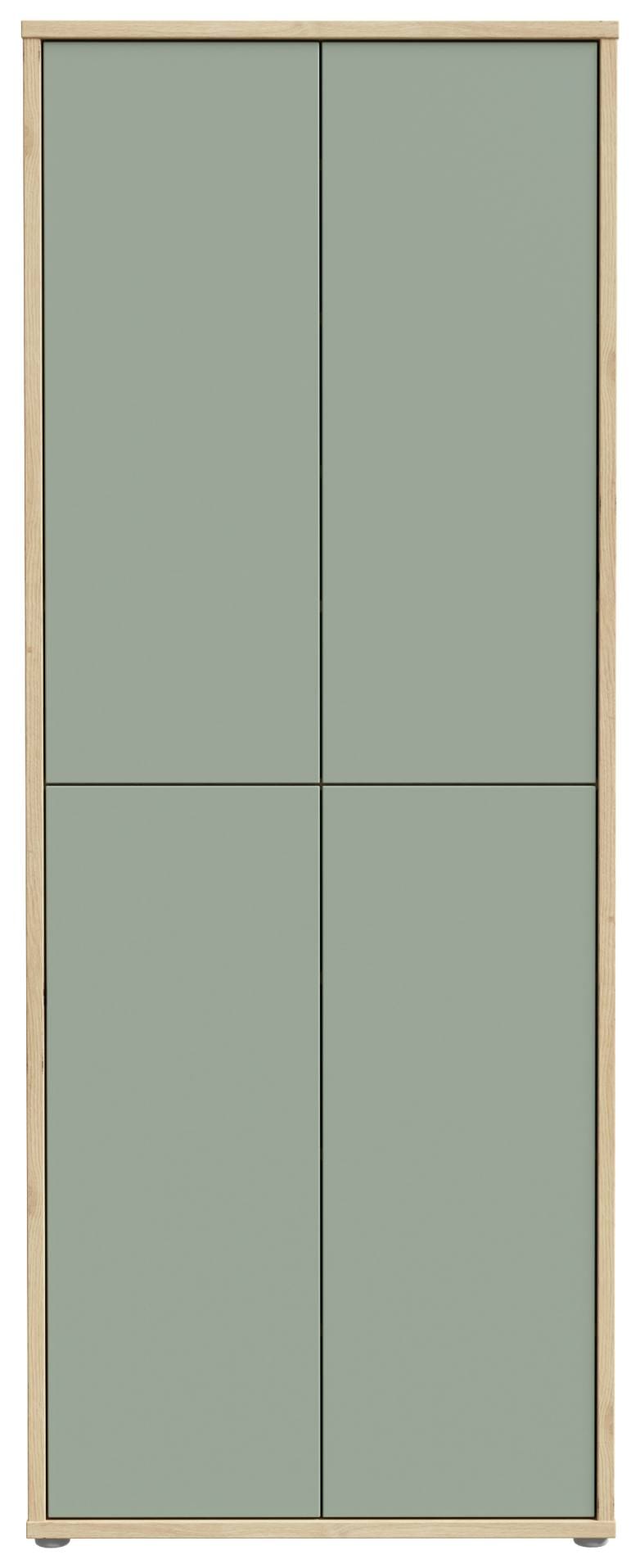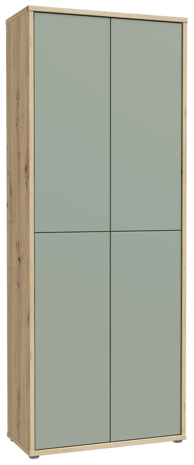 Dieser dekorative Mehrzweckschrank Garderobenschrank ALICE SPRINGS ist eine Bereicherung, egal, wo Sie ihn aufstellen. Endlich genug Platz, - und das hinter einer so schönen Fassade! Dabei ist es vor allem das schnörkellose Design, das den Blick immer wieder auf die Fronten des Modells richtet. Der Korpus hat eine gefällige Beschichtung in Artisan Eiche. Bei den Türen hat man die Wahl zwischen Secret Grey oder Sagel Green (Salbei).