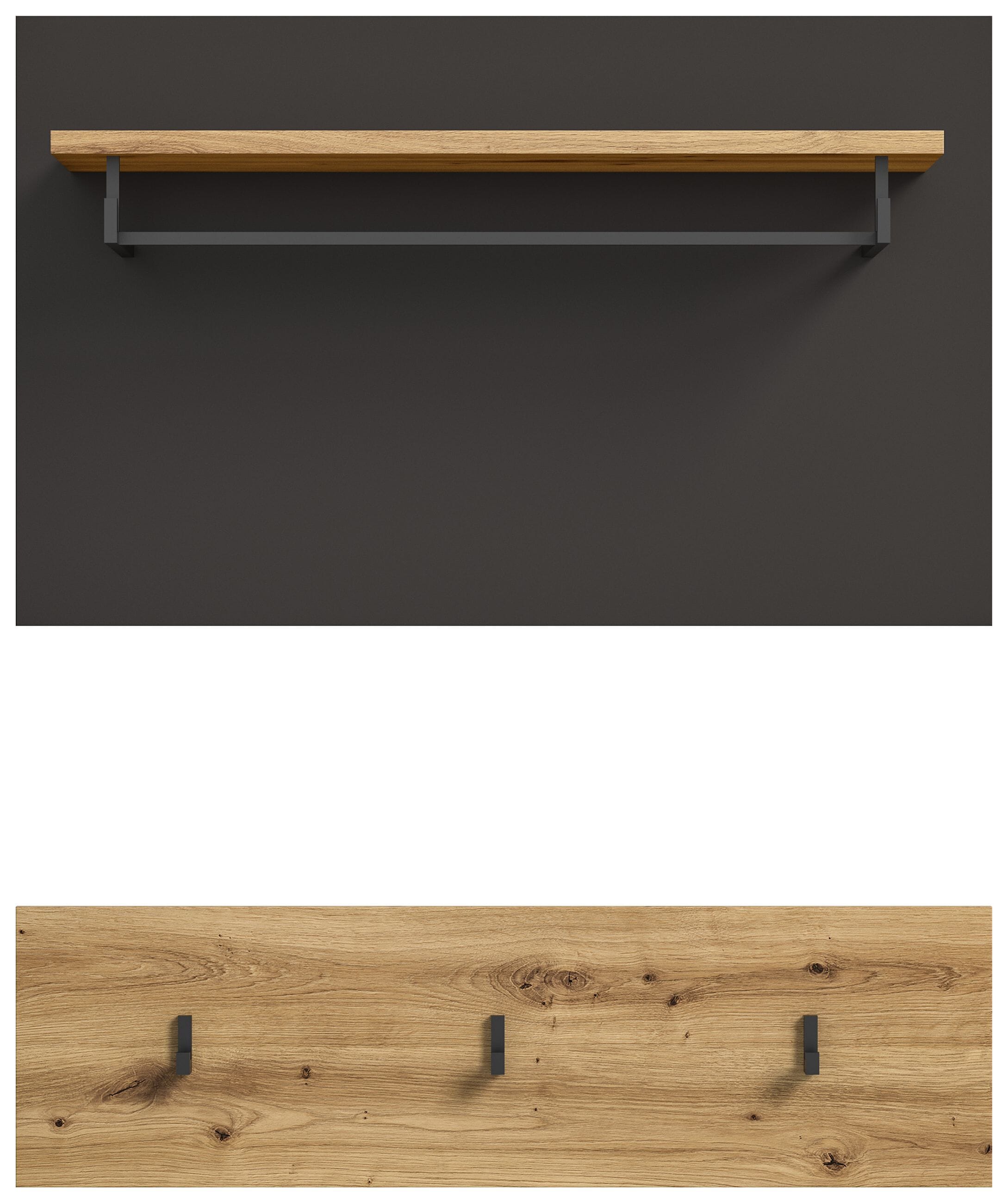 Willkommen in Ihrem stilvollen Eingangsbereich! Unser Garderobenpaneel Canu vereint modernes Design mit praktischer Funktionalität und schafft eine einladende Atmosphäre in Ihrem Zuhause.