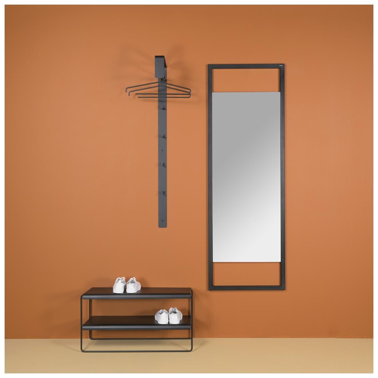 Mit ihrer stabilen Konstruktion und der eleganten schwarzen Farbe passt sie perfekt in jedes moderne Zuhause. Die Garderobe bietet ausreichend Platz für Ihre Kleidung und Accessoires und sorgt für Ordnung und Übersichtlichkeit.