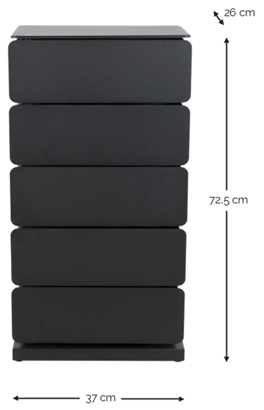 Mit ihrer robusten Konstruktion aus pulverbeschichtetem Stahl ist die JOEY 5 Dresser in verschiedenen Größen erhältlich und bietet eine langlebige Lösung für Ihre Aufbewahrungsbedürfnisse. Unser Tipp: Nutzen Sie sie als praktischen Stauraum unter Ihrem Schreibtisch oder als stilvollen Nachttisch neben Ihrem Boxspringbett.