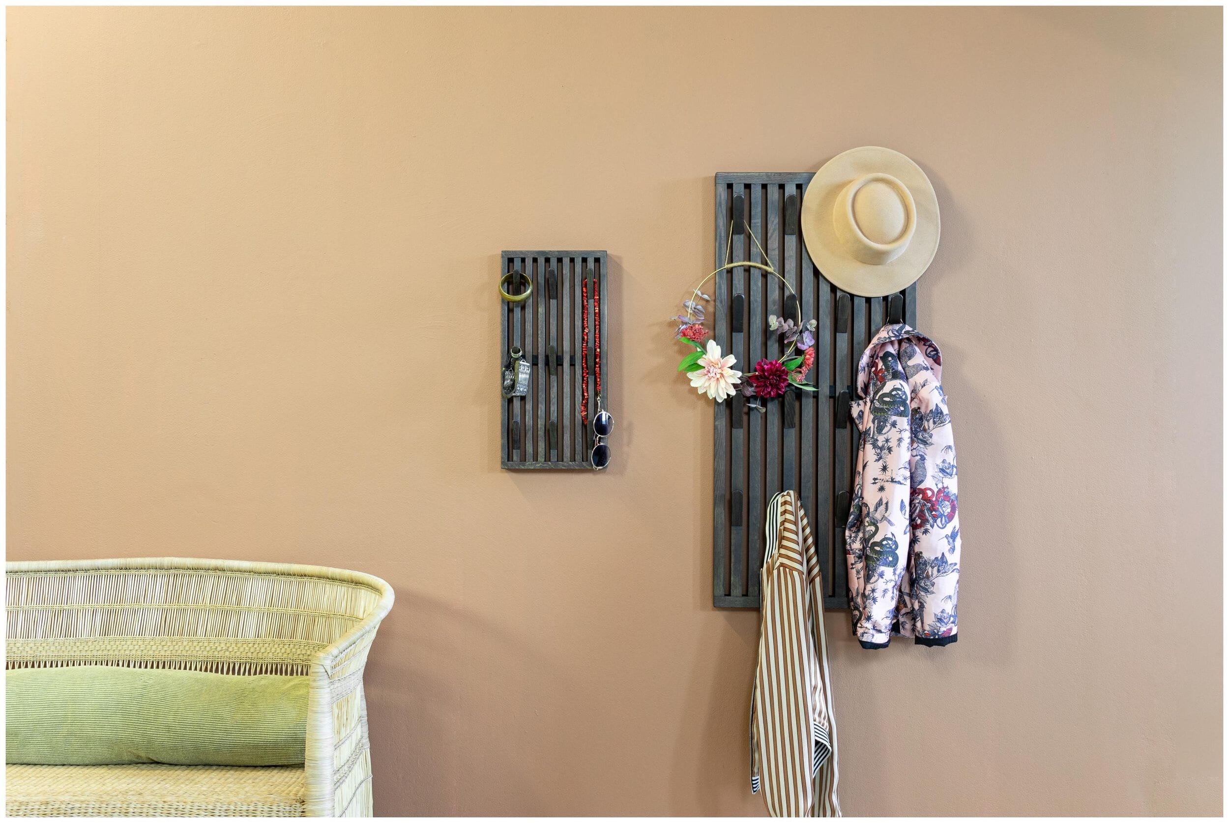Der Parco Large Garderobe ist nicht nur ein Blickfang, sondern auch äußerst praktisch. Mit 16 Haken bietet er ausreichend Platz für Ihre Kleidung und Accessoires. Die akustischen Paneele sorgen für eine angenehme Raumakustik und machen ihn ideal für verschiedene Räume wie Küche, Schlafzimmer, Badezimmer oder Flur.