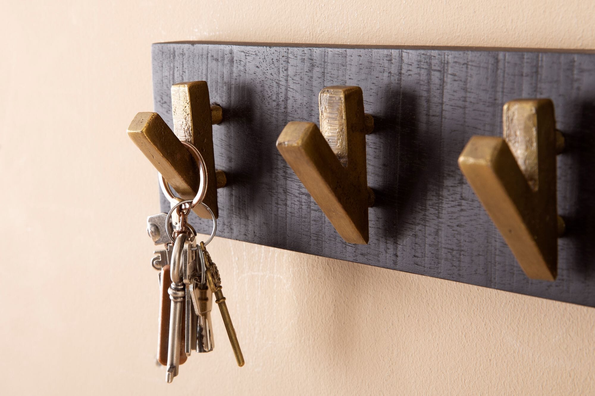 Wandgarderobe Mango Massivholz Metall 60x10x8cm Schwarz Gold Hakenleiste Flur