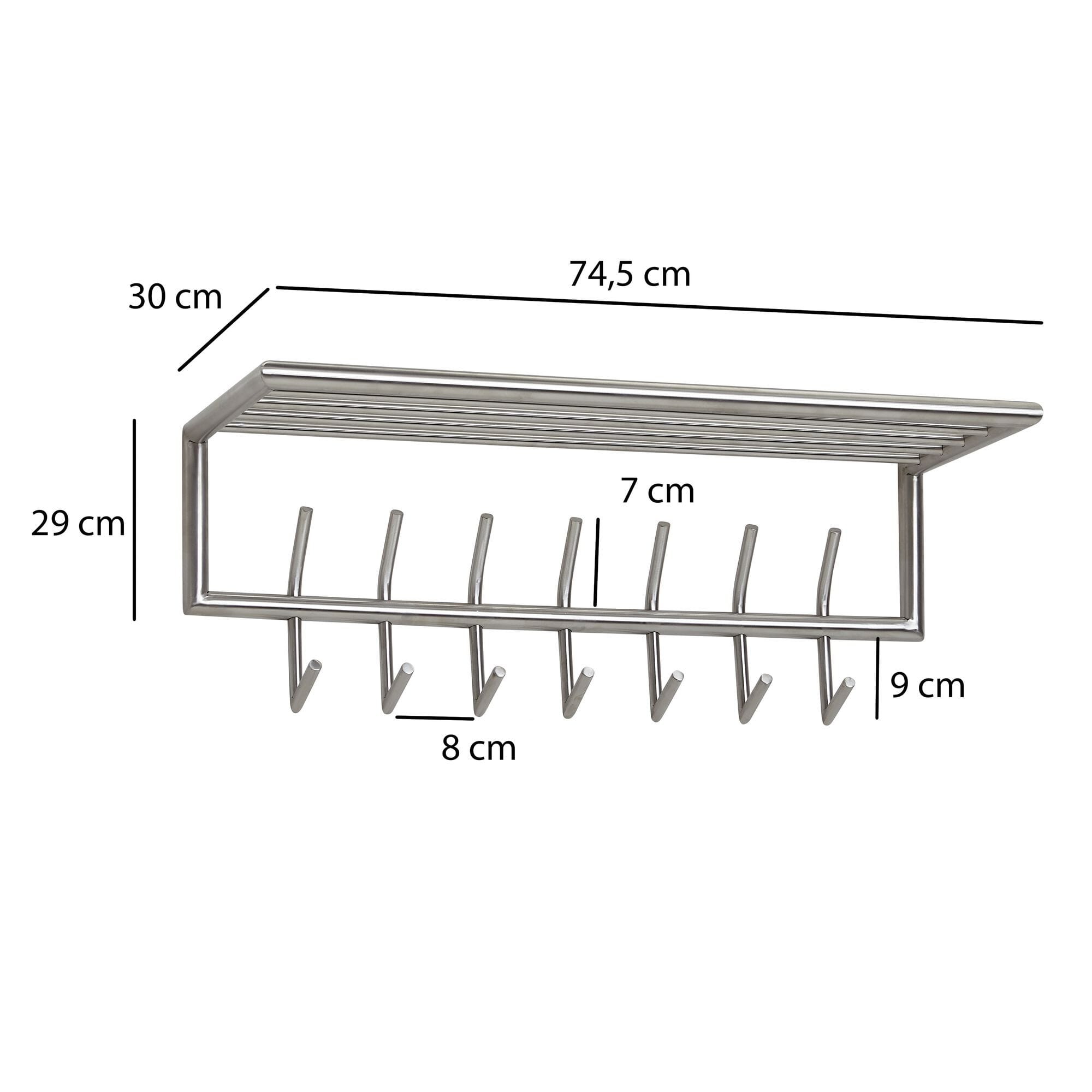 Wandgarderobe Metall Silber 74,5x29x30cm mit Ablage Hakenleiste Stahl Flur