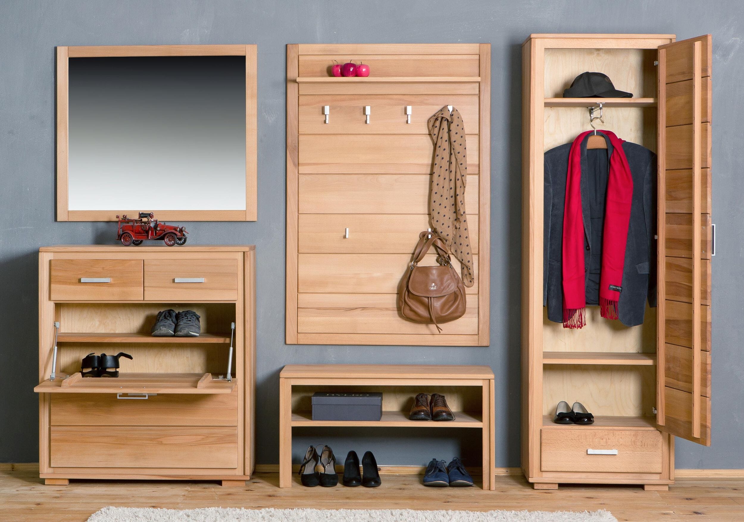 Die akzentvolle Optik der Holzoberflächen verleiht dem Wohnobjekt einen einmaligen Charakter. Die einzigartige Holzmaserung kommt durch die Behandlung mit Wachsen und Ölen noch besser zur Geltung. Das naturbelassene Material strahlt zudem Wärme und Gemütlichkeit aus. Dadurch entsteht eine einladende Stimmung in Ihrem Eingangsbereich. Die kompakte Aufmachung des Dielenschrankes Genf ermöglicht einen flexiblen Einsatz des Möbels sogar bei begrenztem Platzangebot. Dennoch bietet der praktische Schrank jede Menge Stauraum für Kleidung und Accessoires.