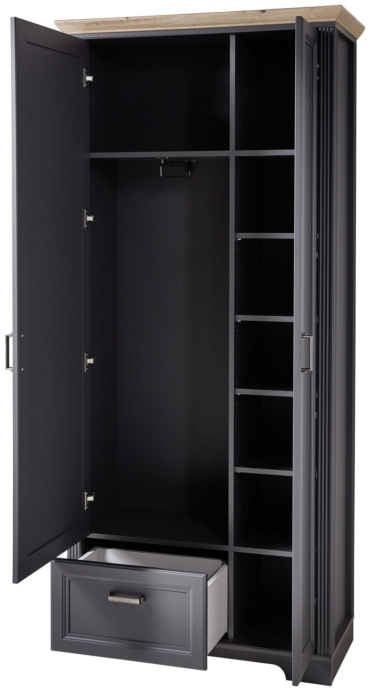 Das Äußere ist definitiv schick. Pinie in eleganten Farbton Graphit, wirkt clean und hebt die Laune nach einem langen Tag. Und noch mehr hebt sich die Laune, wenn Sie sehen, wie viel Stauraum Sie erhalten.