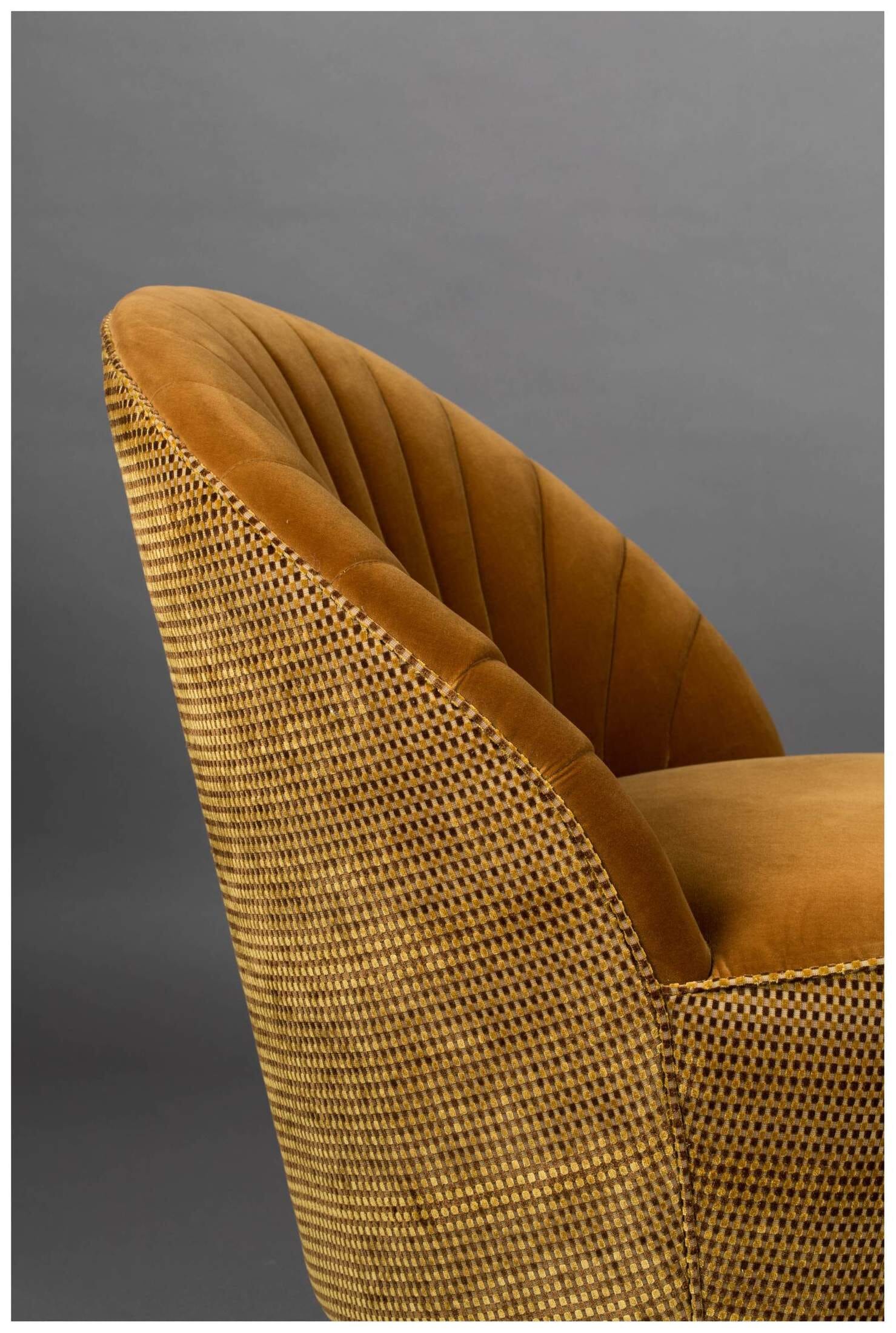 Ein Sitzmöbel im schönsten Look der 1970er Jahre stellt der Lounge Sessel MADISON vom Label DutchBone dar. Neben der zeitgemäßen Formensprache ist es vor allem der trendige Samtstoff in der Farbe WHISKEY, der dem Sessel sein markantes Aussehen verleiht und gleichzeitig in verblüffender Weise an die typischen Stoffmuster der damaligen Zeit erinnert.