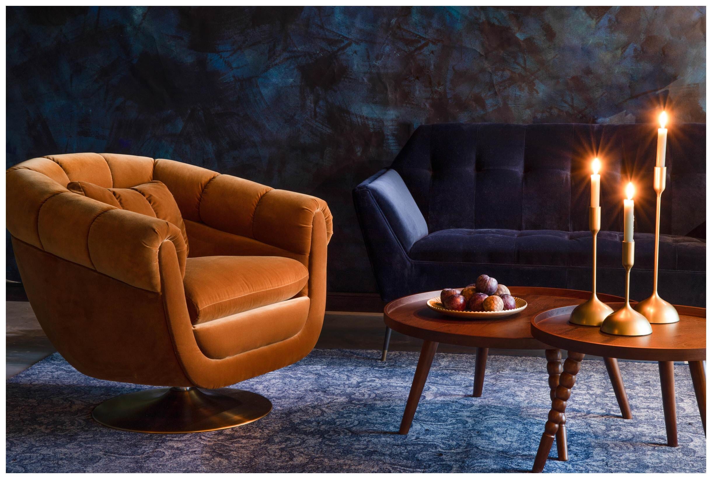 Drehbarer Lounge Sessel MEMBER Samtstoff WHISKEY von DutchBone