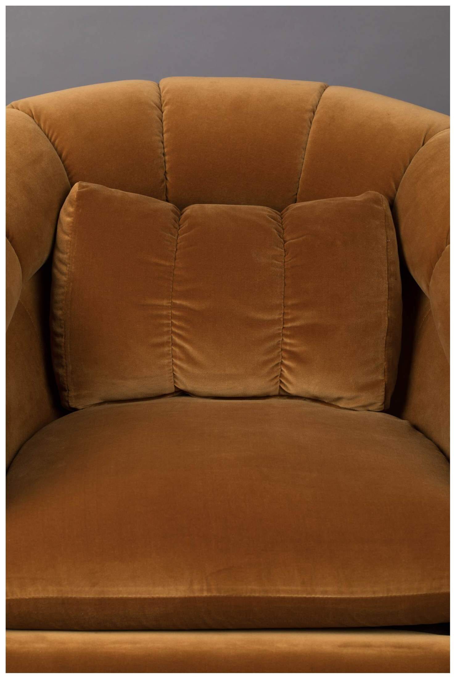 Ein Sitzmöbel im schönsten Look der 1970er Jahre stellt der Lounge Sessel MEMBER vom Label DutchBone dar. Neben der zeitgemäßen Formensprache ist es vor allem der trendige Samtstoff in der Farbe WHISKEY, der dem Sessel sein markantes Aussehen verleiht und gleichzeitig in verblüffender Weise an die typischen Stoffmuster der damaligen Zeit erinnert.