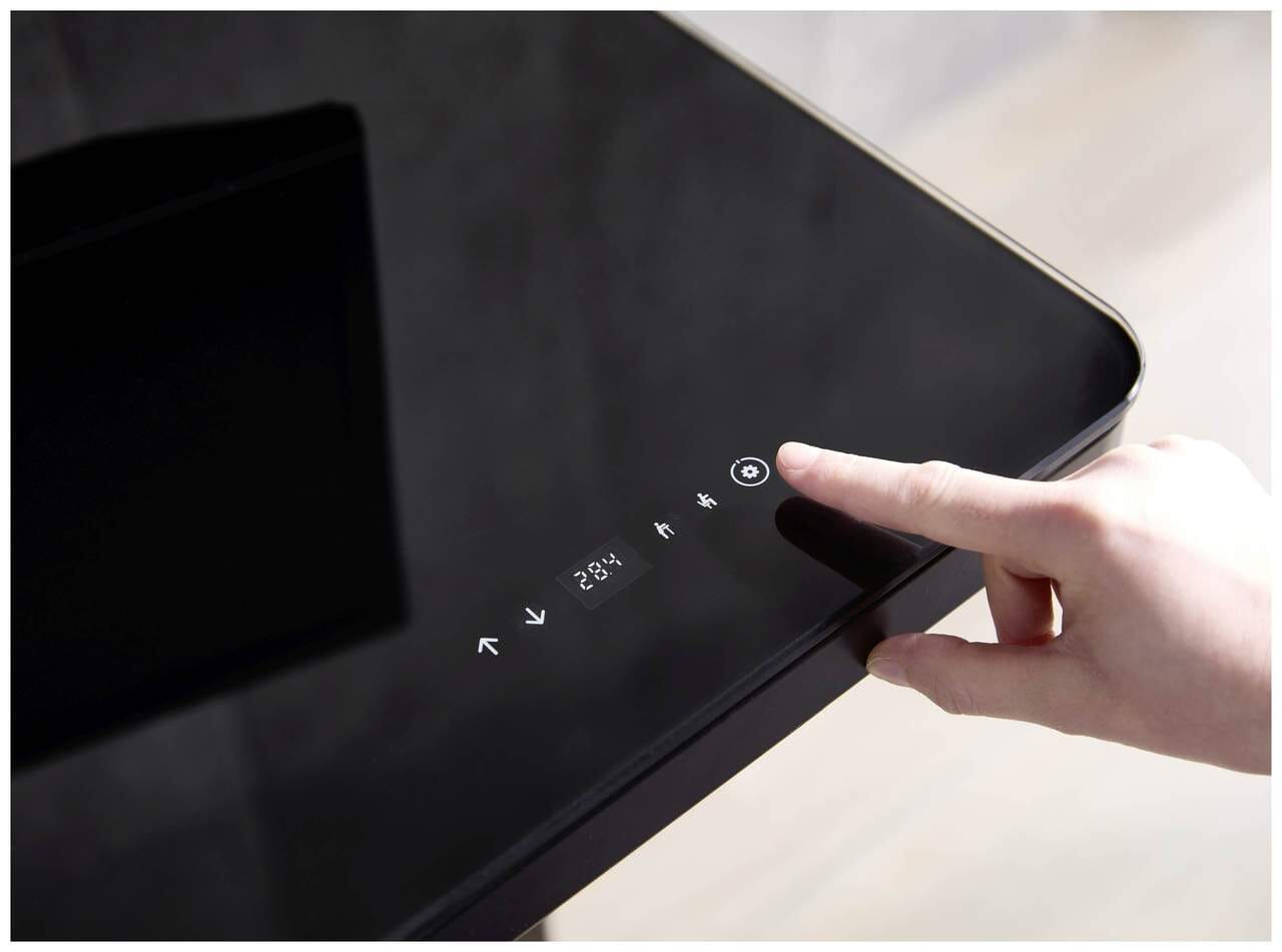 - Sensortasten der Höhenverstellung direkt in die Glasplatte integriert