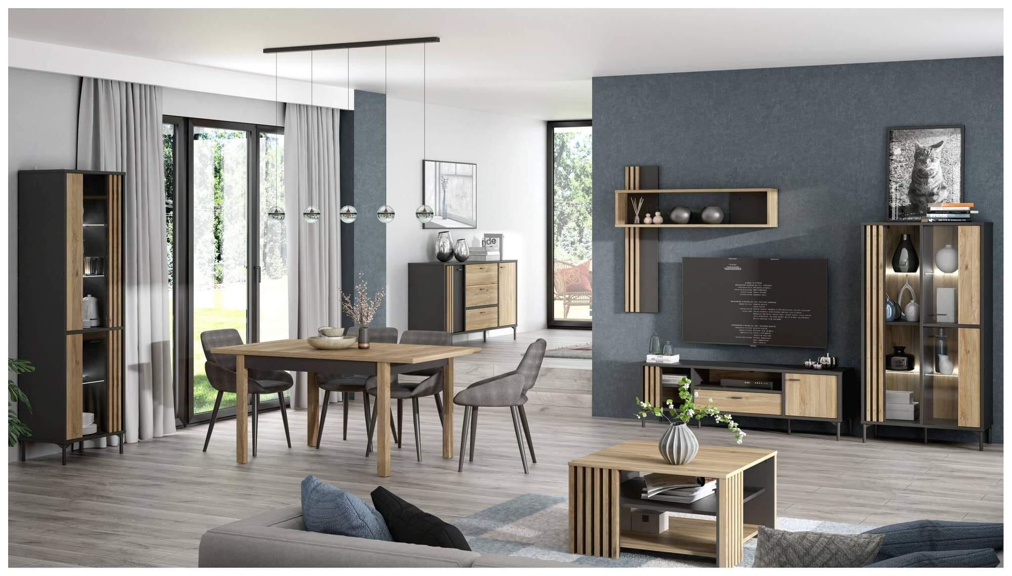 Dieser Tisch mag es gerne gesellig. Das heißt, Sie könnten ihm gleich seinen Kumpanen, das Sideboard oder die Vitrine gleichen Namens, zur Seite stellen.