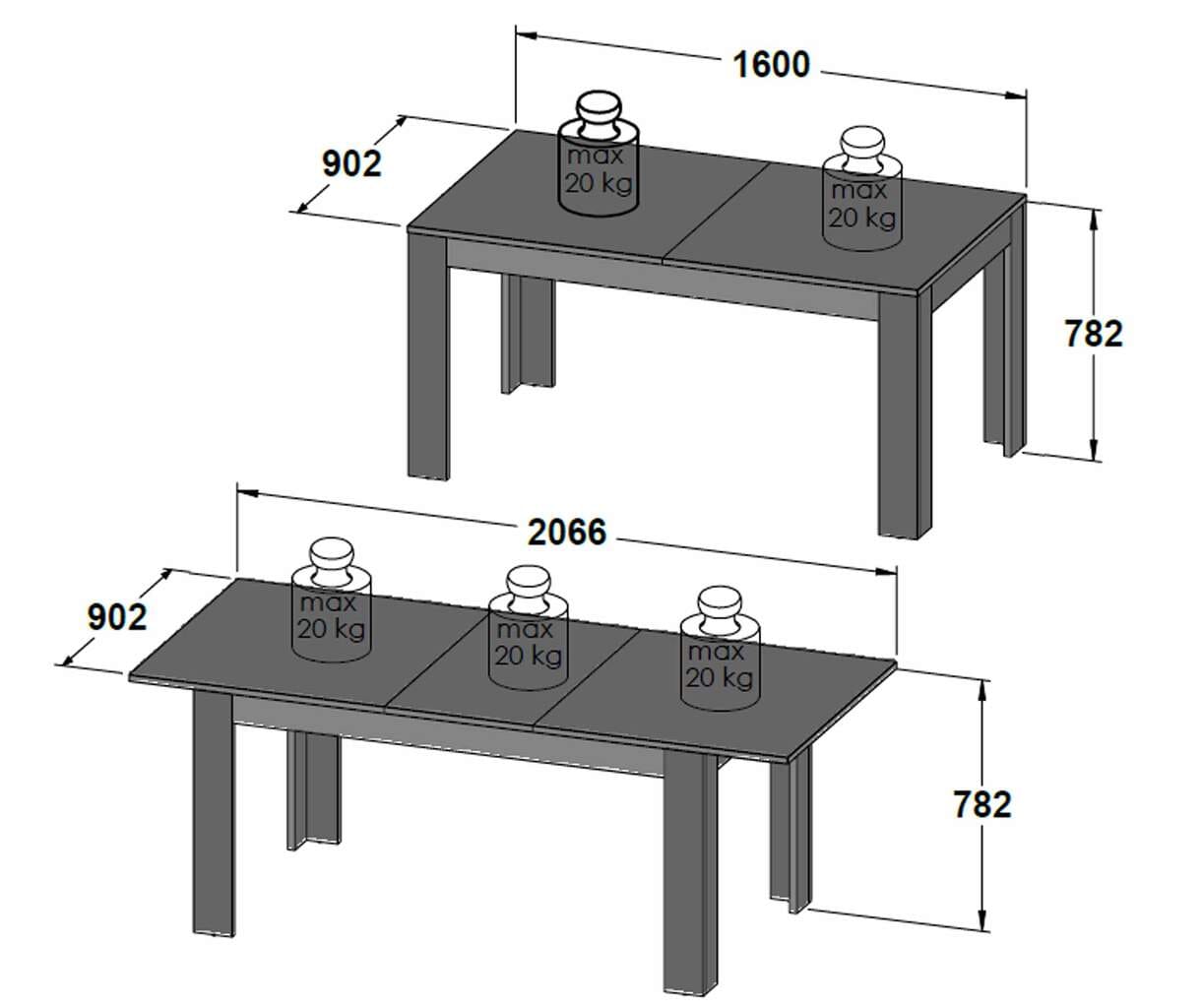- Maße: 160 x 90 cm, Höhe: 78,2 cm