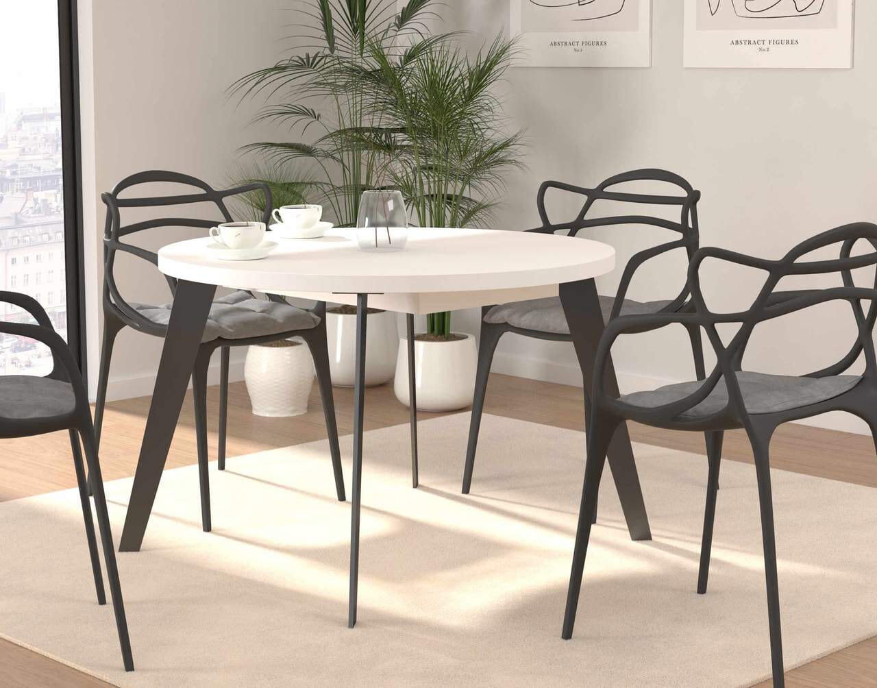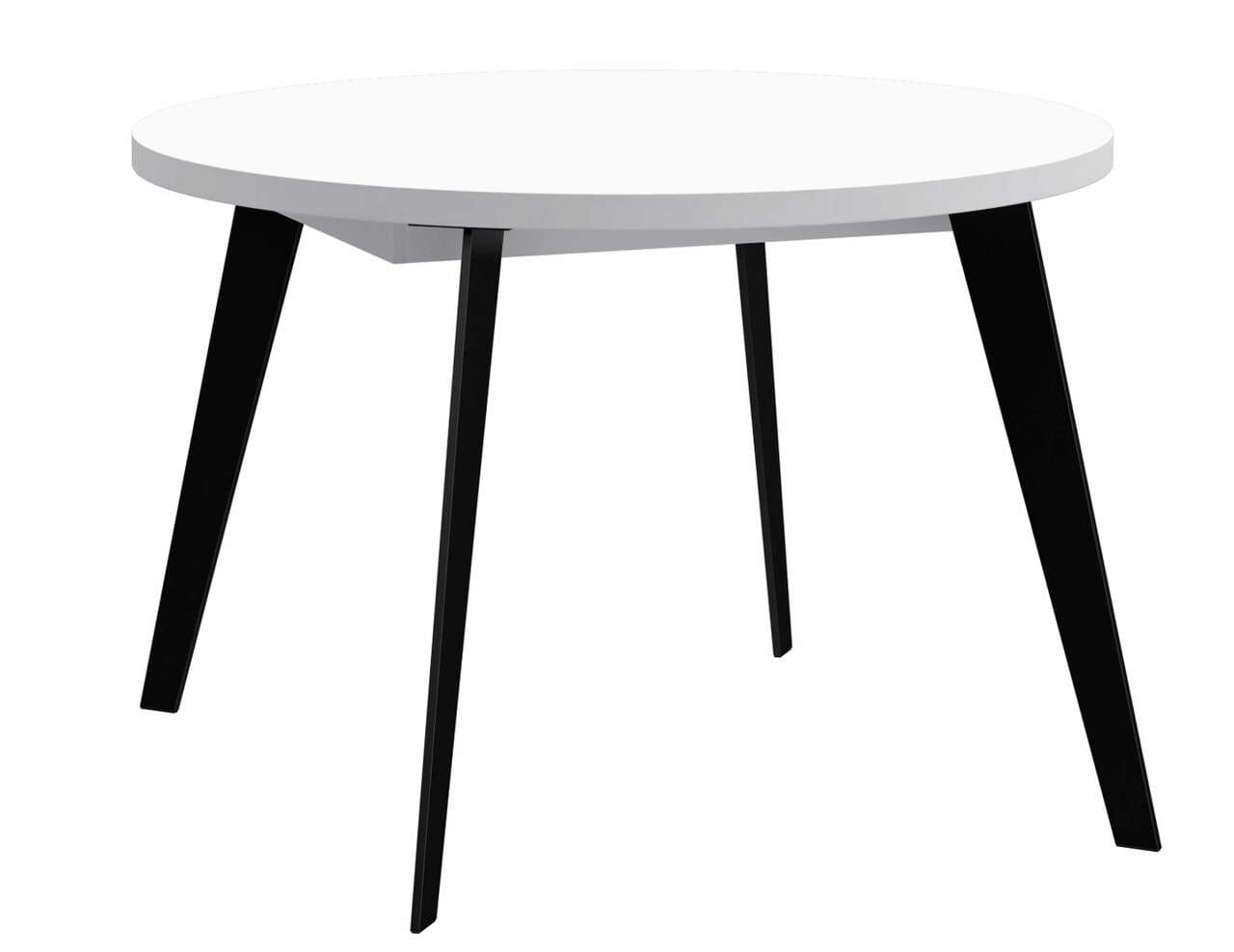 Esstisch Ausziehtisch TABLE ROUND 110 - 155 cm Weiß Metallfüße schwarz