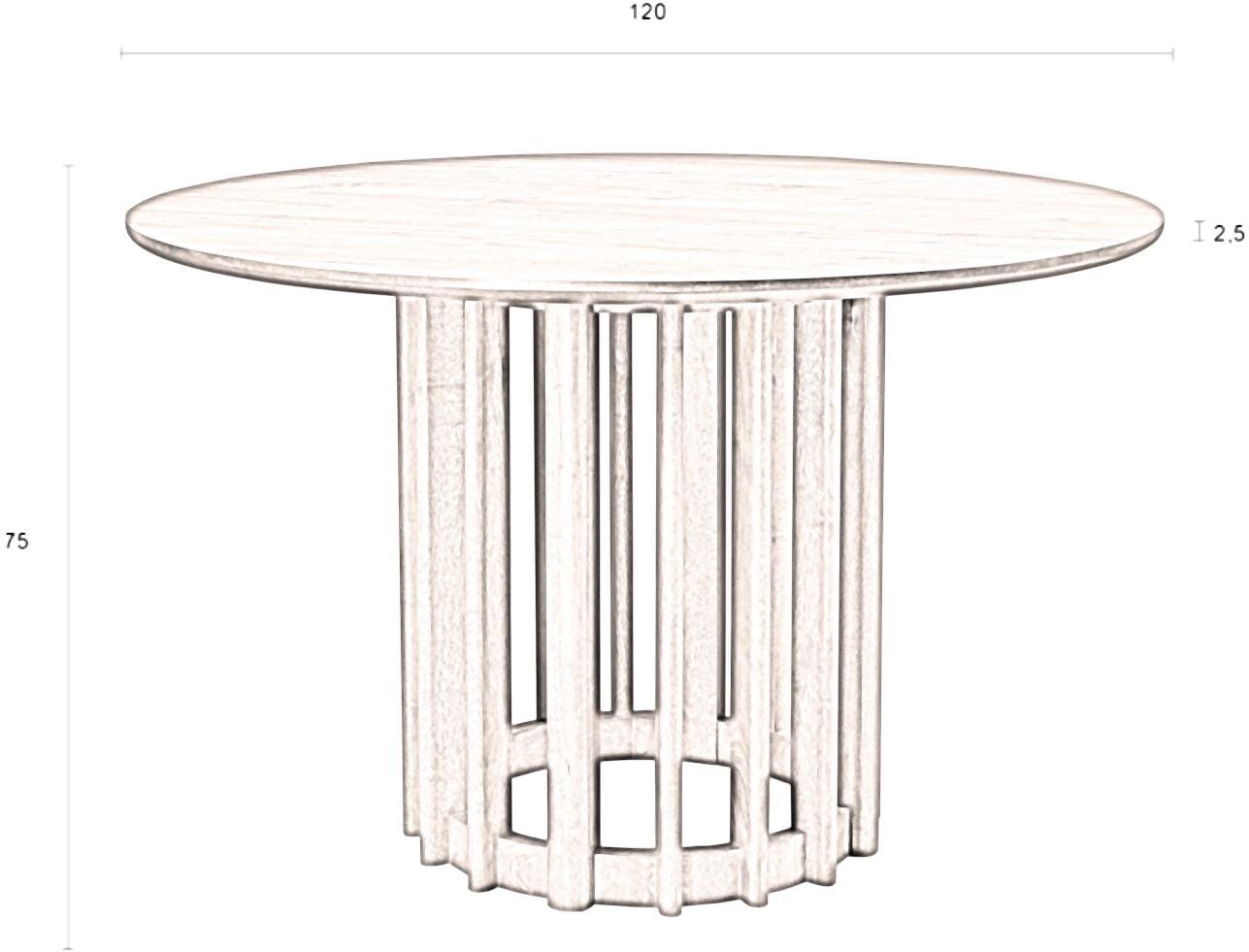 - Maße Tischplatte: Ø 120 cm, 2,5 cm