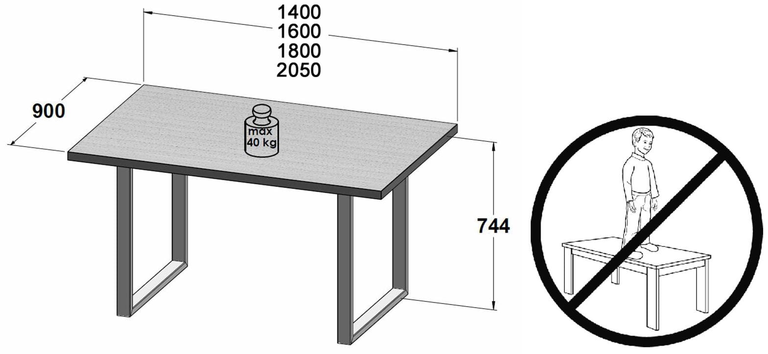 • Tischhöhe: 74,4 cm