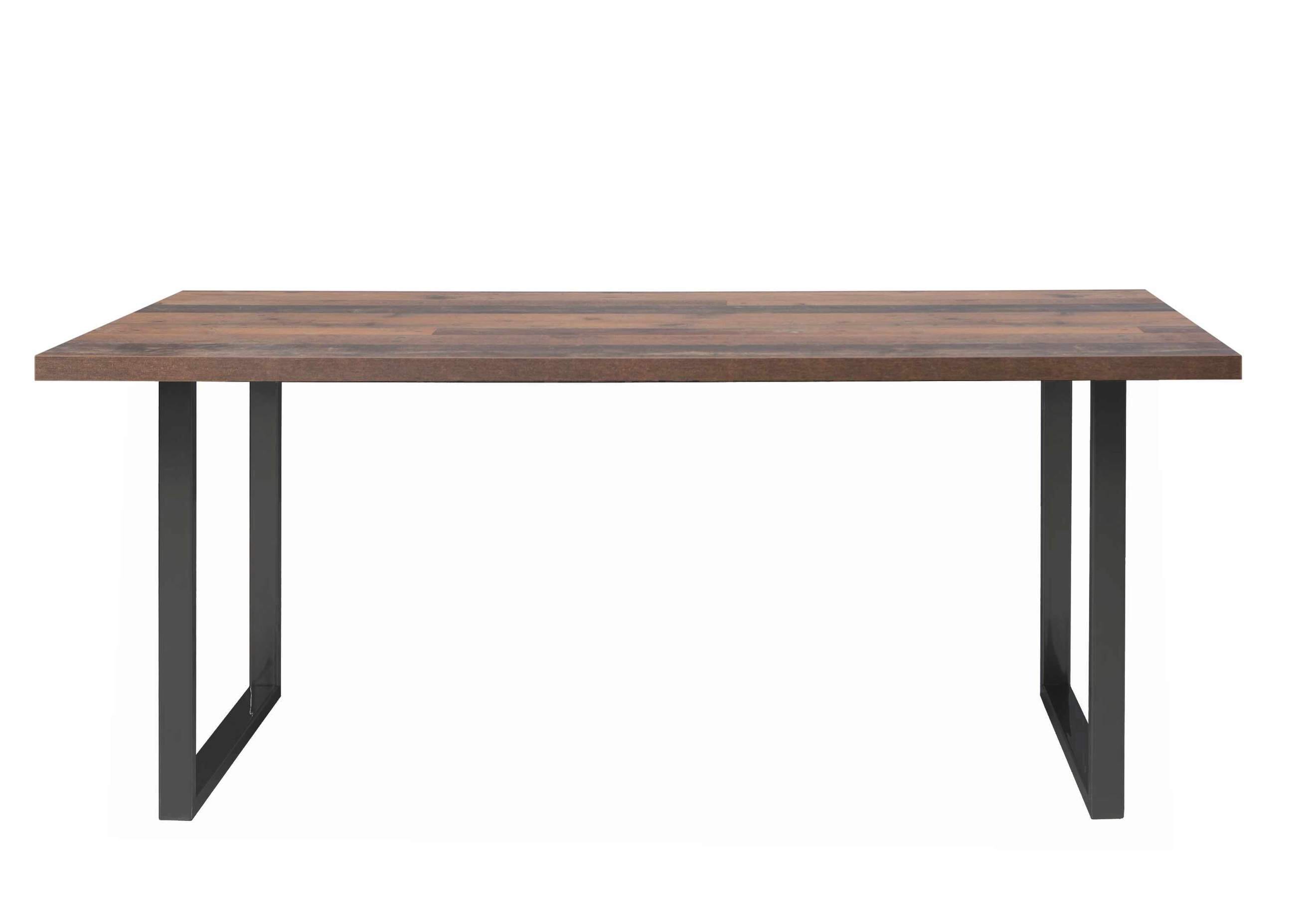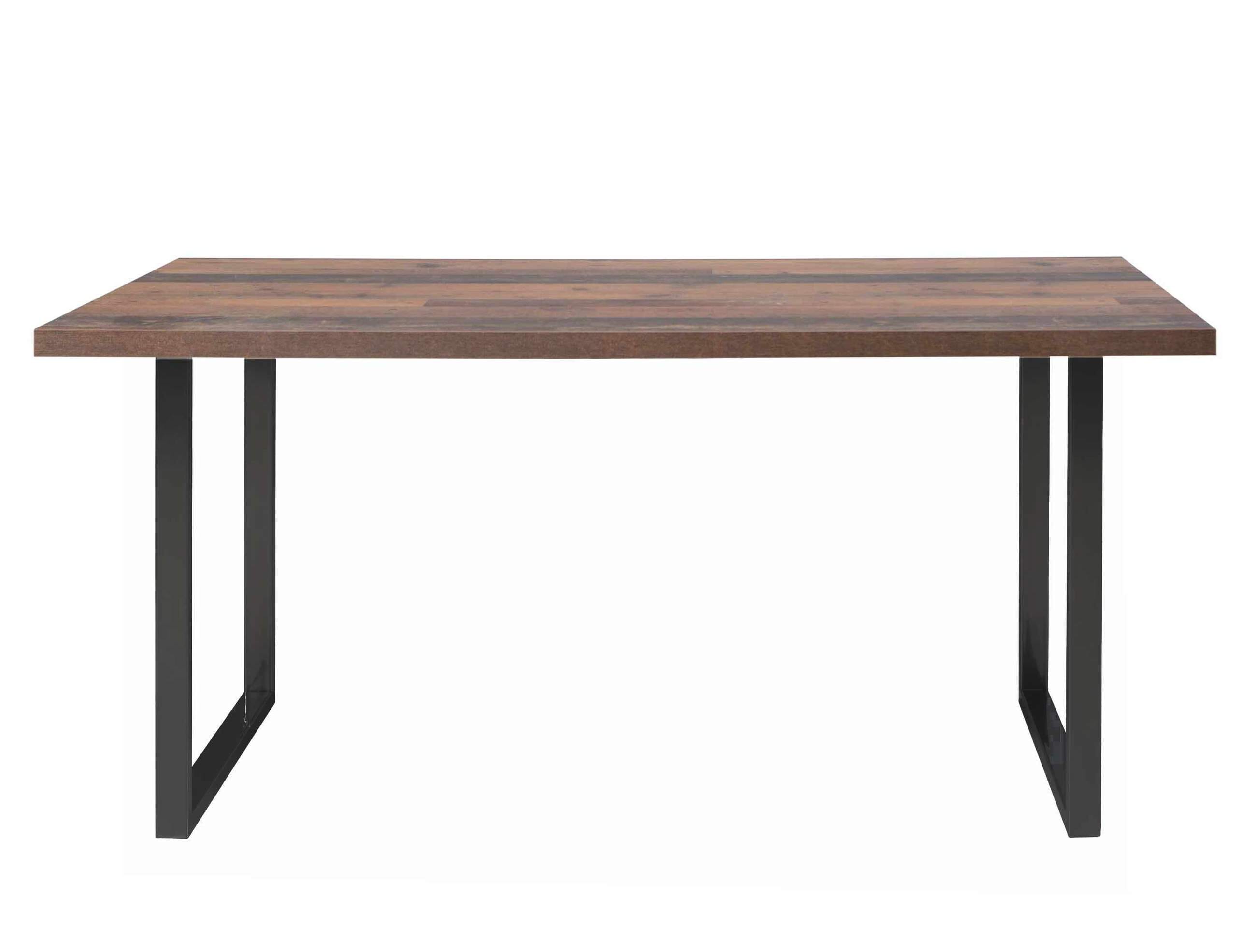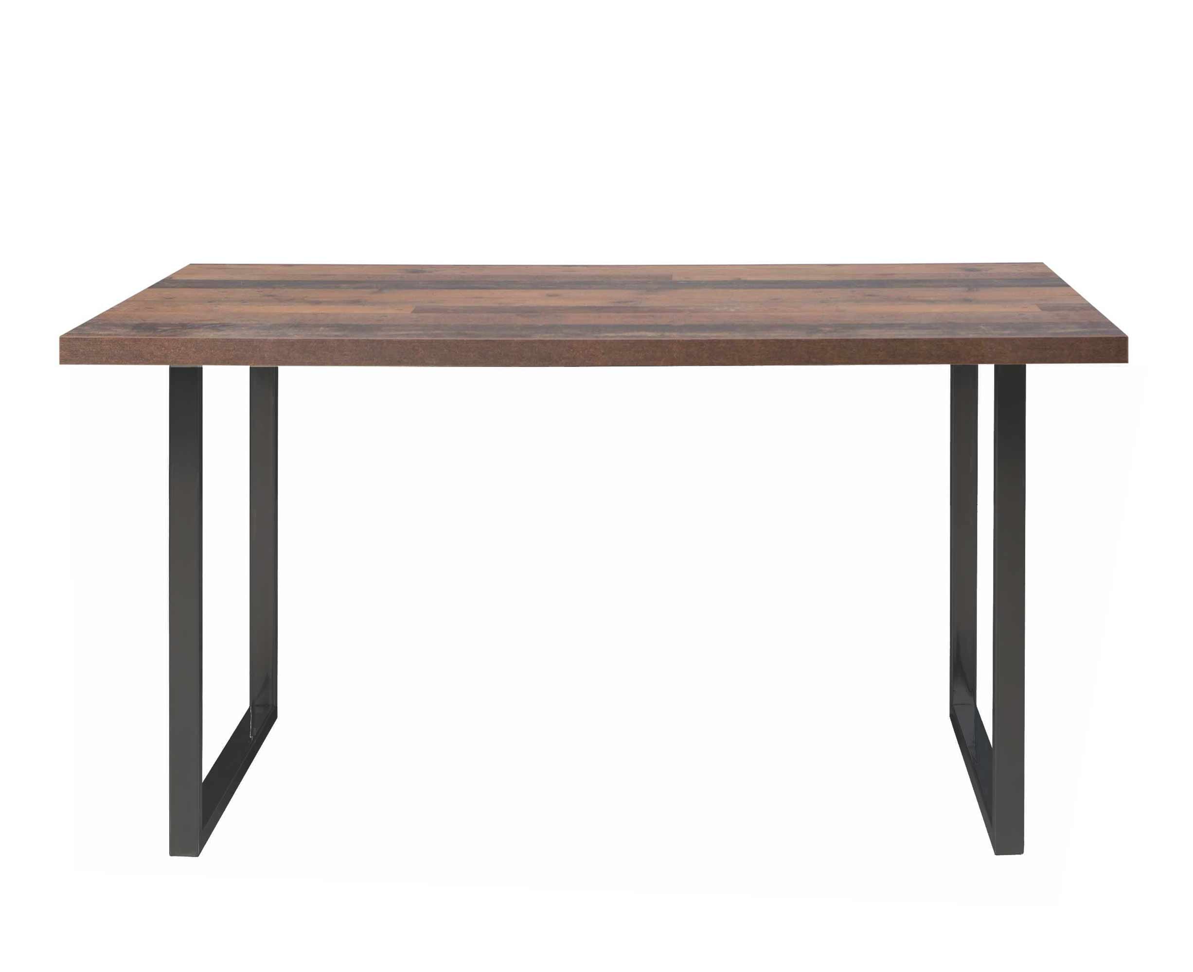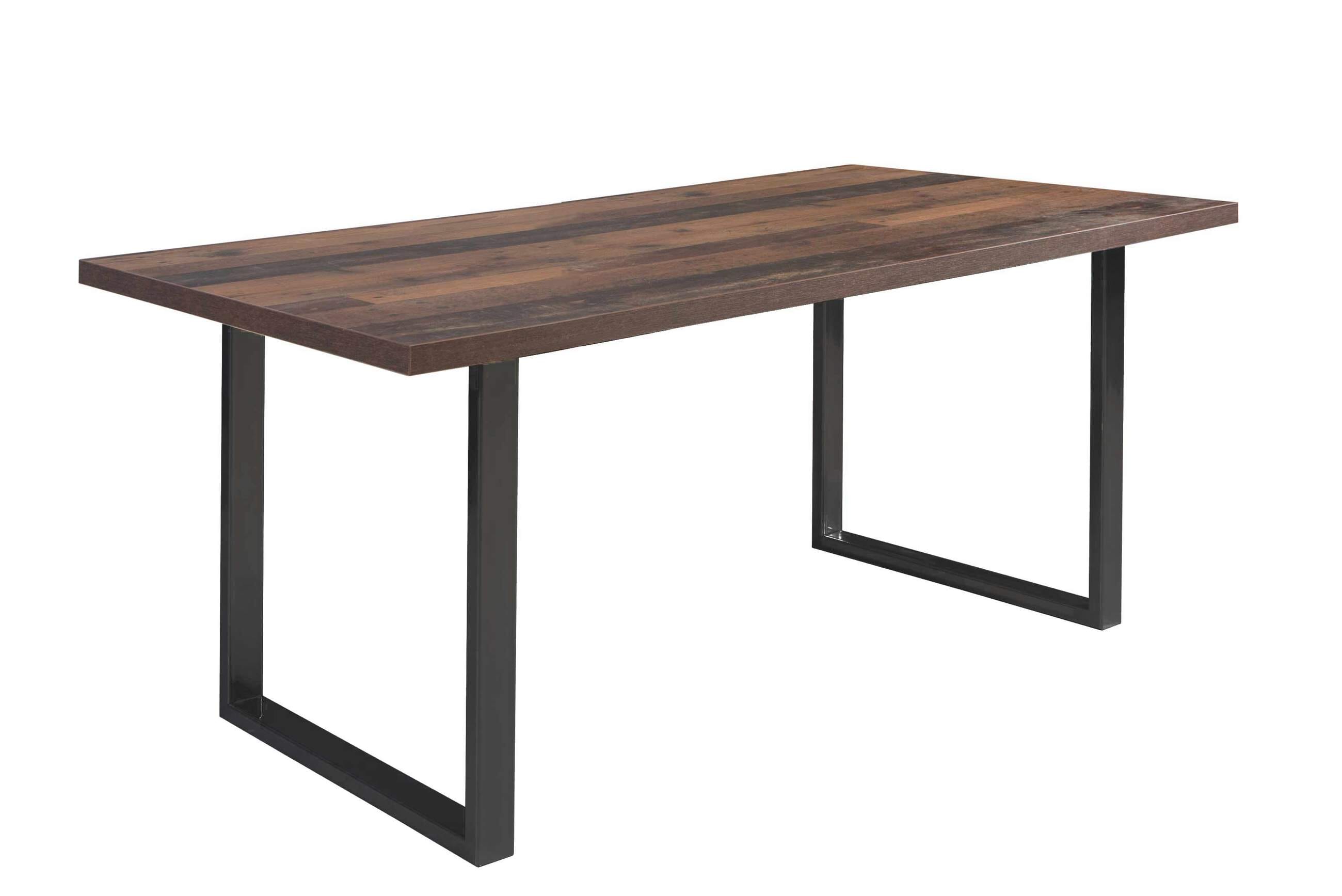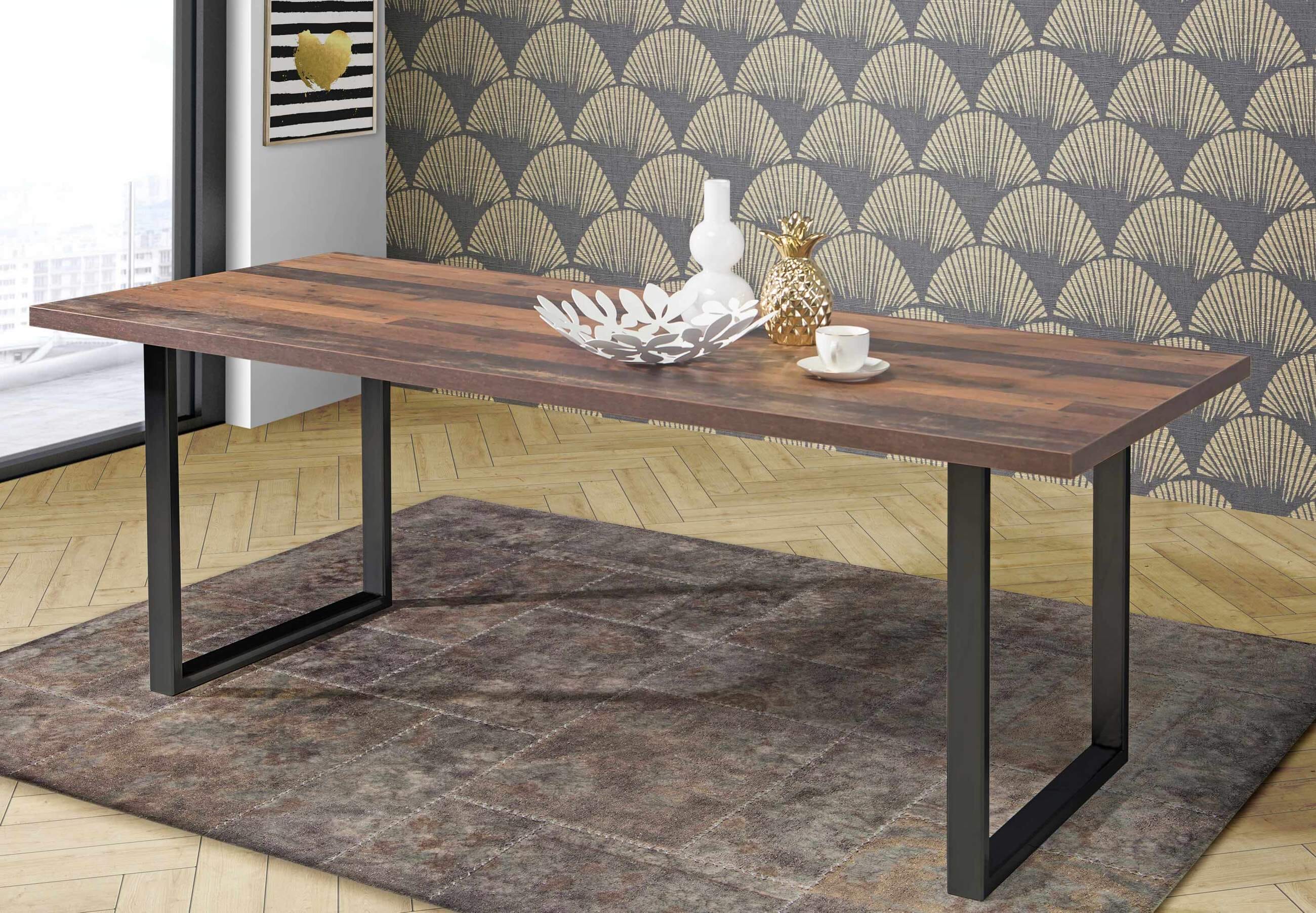 Vor allem der Kontrast aus gefälliger Tischplatte und kühlem Metallgestell aus schwarzem Eisen sorgt ganz bestimmt für Hingucker. Die Platte des Tisches ist aus beschichteter Spanplatte hergestellt und in der Optik Old Wood gehalten.