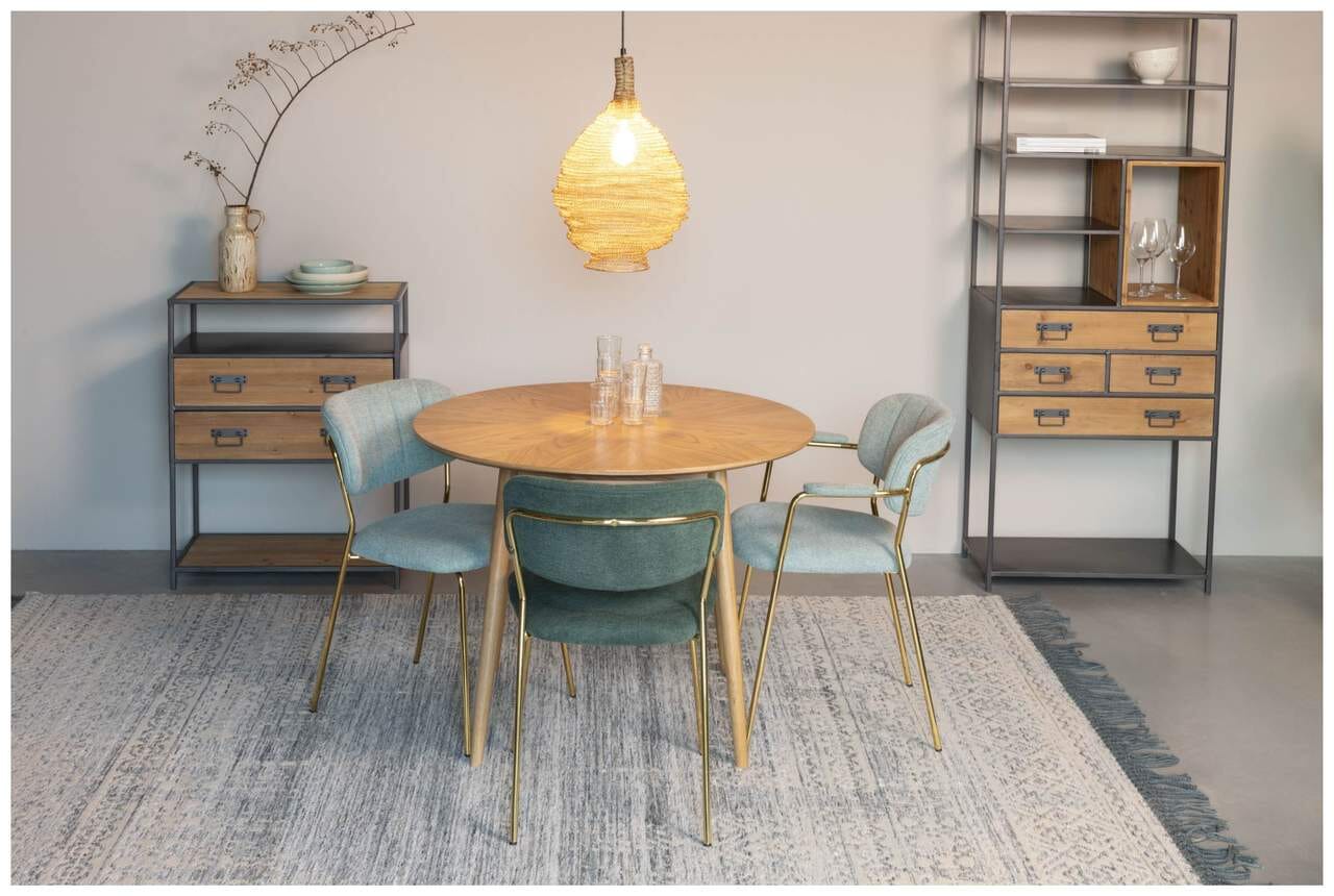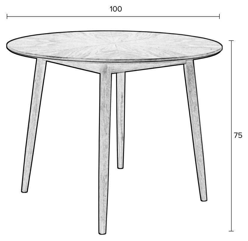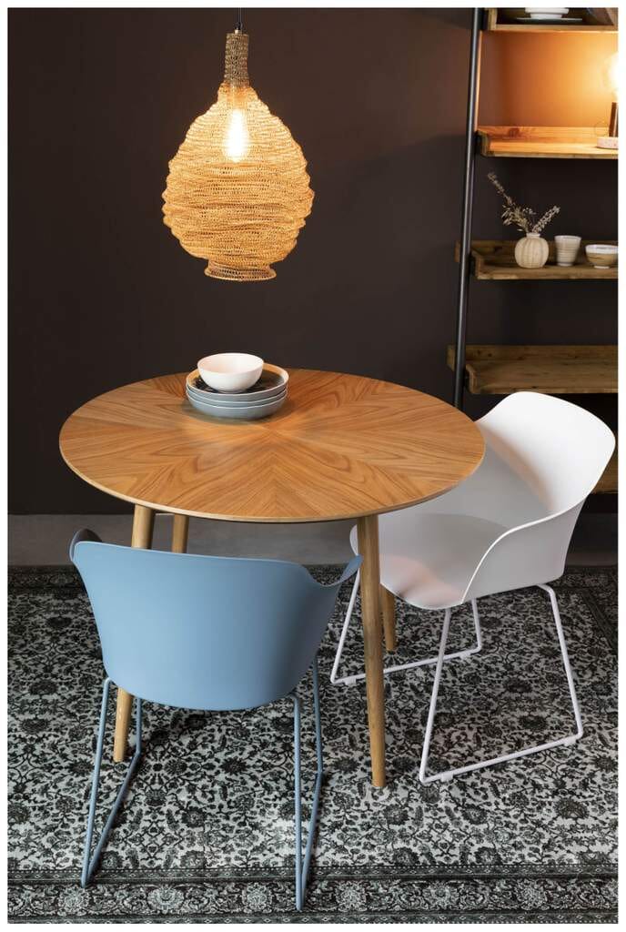 Kombiniert mit Freischwingern oder klassischen Stühlen sorgt der Esstisch für ein gemütliches Ambiente. Mit einem Durchmesser von 100 cm bietet die schöne Tischplatte ausreichend Platz für ca. 3 Personen.
