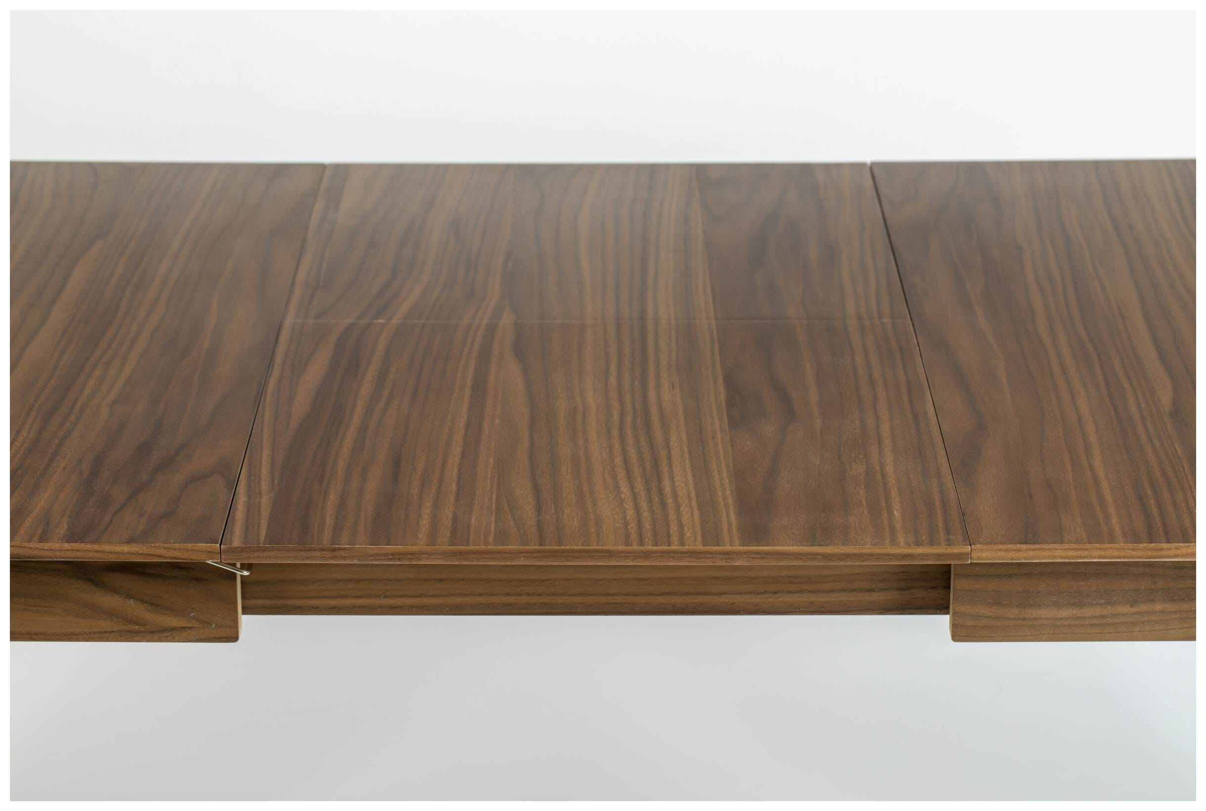 Geradlinig im Design mit leicht ausgestellten Tischbeinen präsentiert sich der vielseitig verwendbare Esstisch GLIMPS in einem zeitlosen Design. Durch seine Gestaltung im skandinavischen Stil passt der rechteckige Tisch im attraktiven Walnussfurnier in modern oder klassisch eingerichtete Wohn- oder Esszimmer. Er ist vielseitig mit verschiedenen Stuhlvarianten kombinierbar und mit den innen liegenden Butterfly-Einlegeplatten bei Bedarf verlängerbar. Er ist ideal für eine 4-bis 6-köpfige Familie, bietet durch den Auszug aber Platz für bis zu 8 Personen.