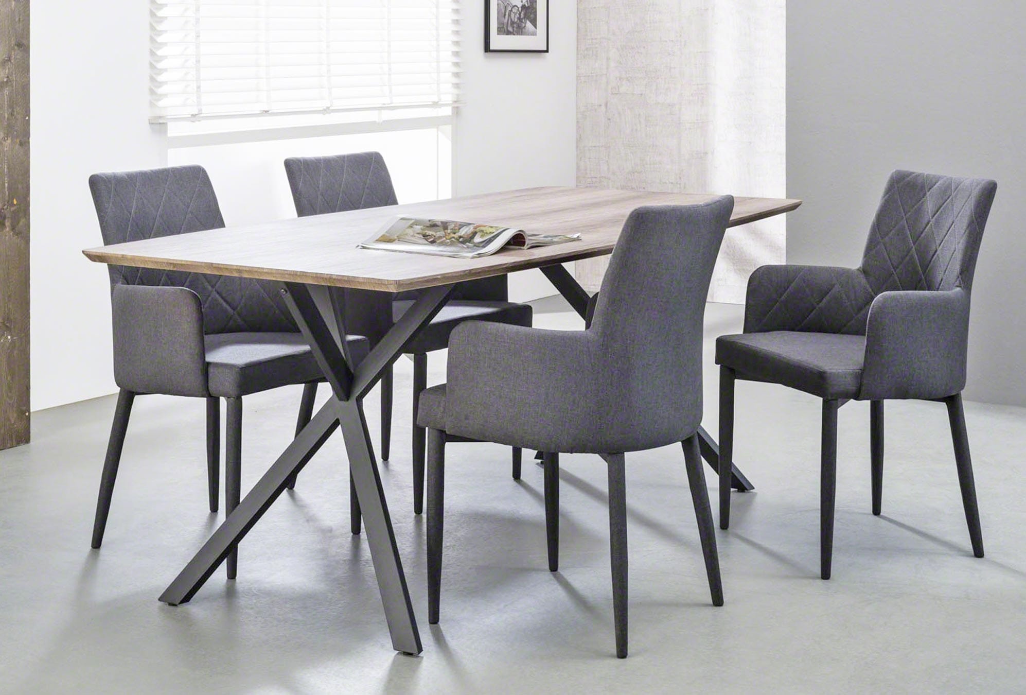 Er schwebt, er steht nicht einfach nur herum: Der Esstisch Henk ist ein leicht und anmutig wirkender Tisch, der auf eine entspannte Art modern ist. Dafür sorgt das gemütliche Dekor, Eiche, die hier in ihrer Wirkung neu definiert wird. Rustikal ist hier ganz sicher nichts, sondern einfach nur behaglich.