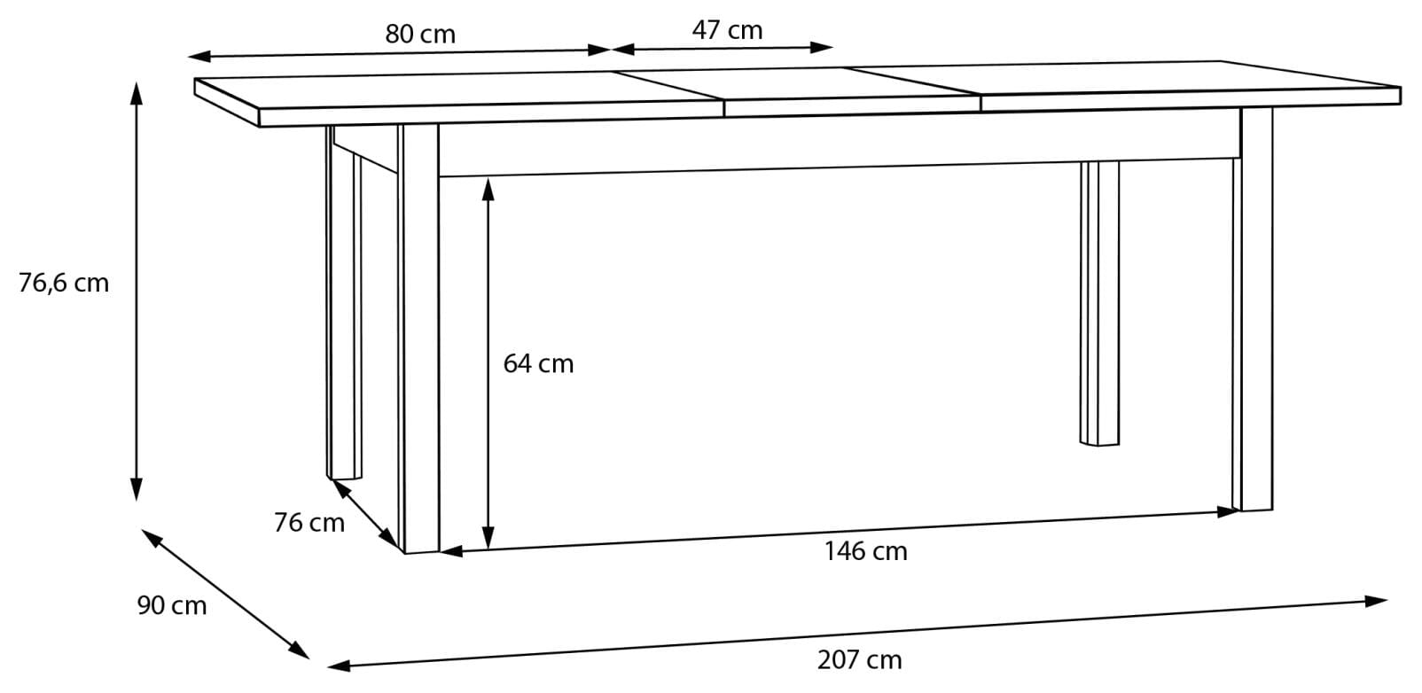 - Maße: 160 - 207 x 90 cm, Höhe: 76,5 cm