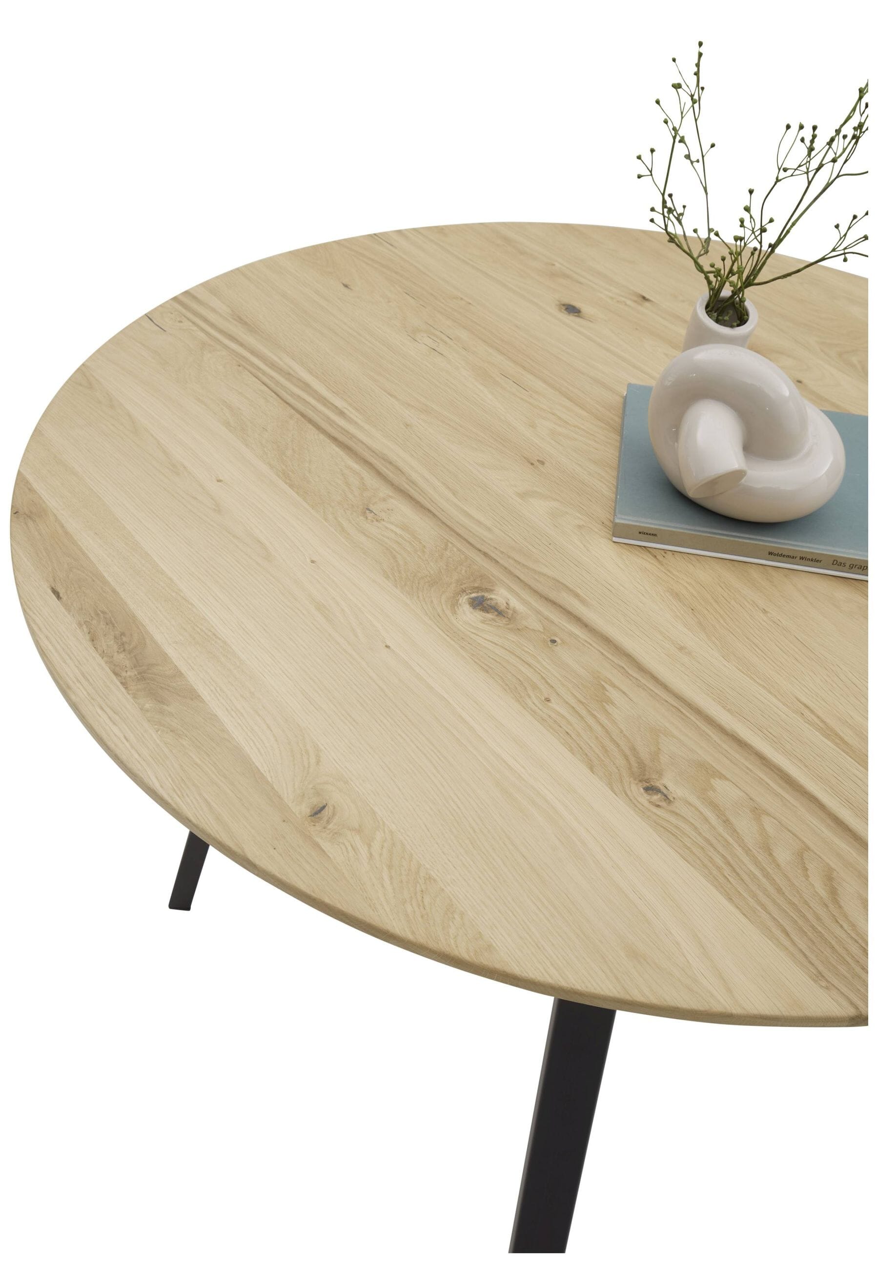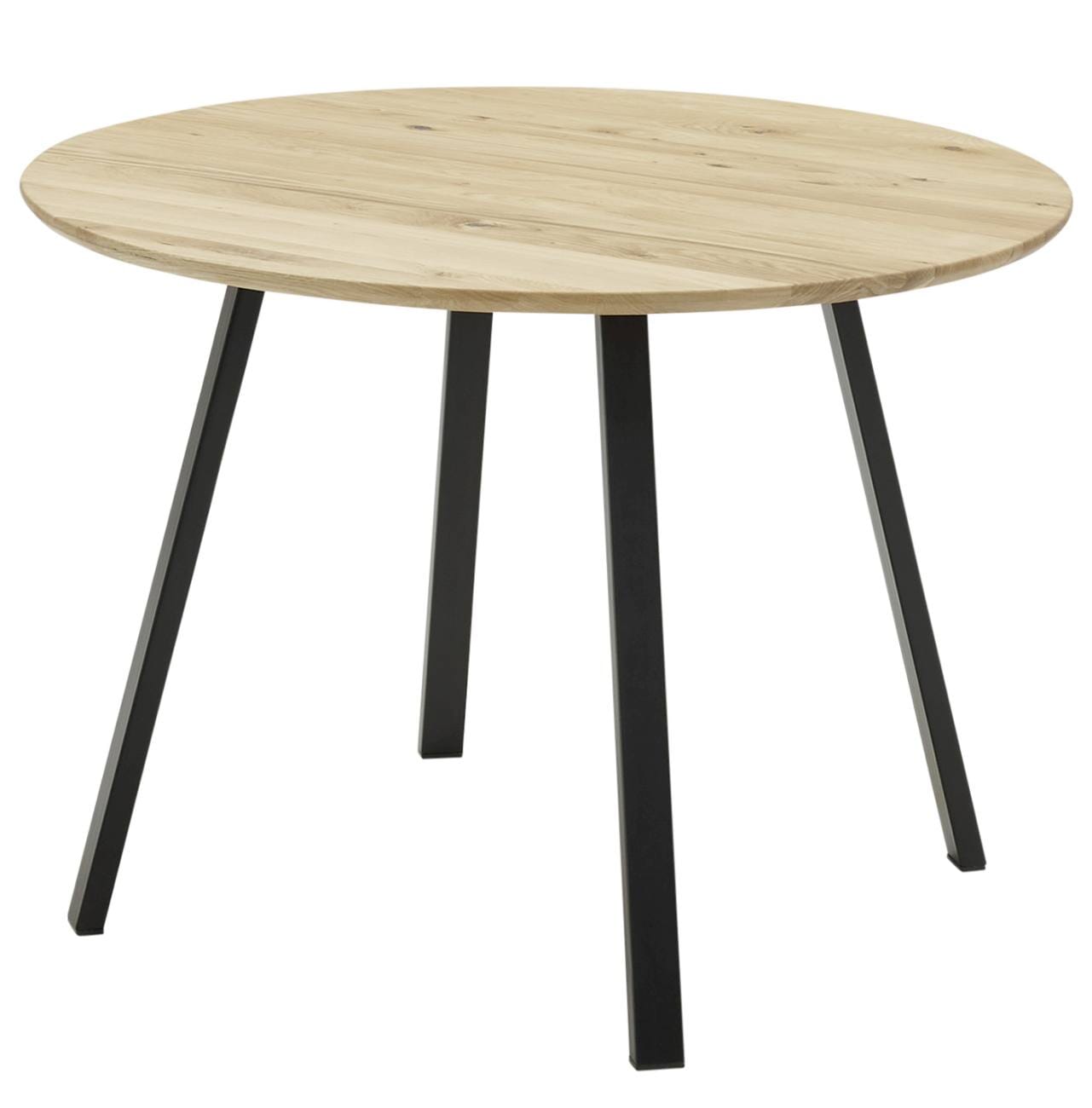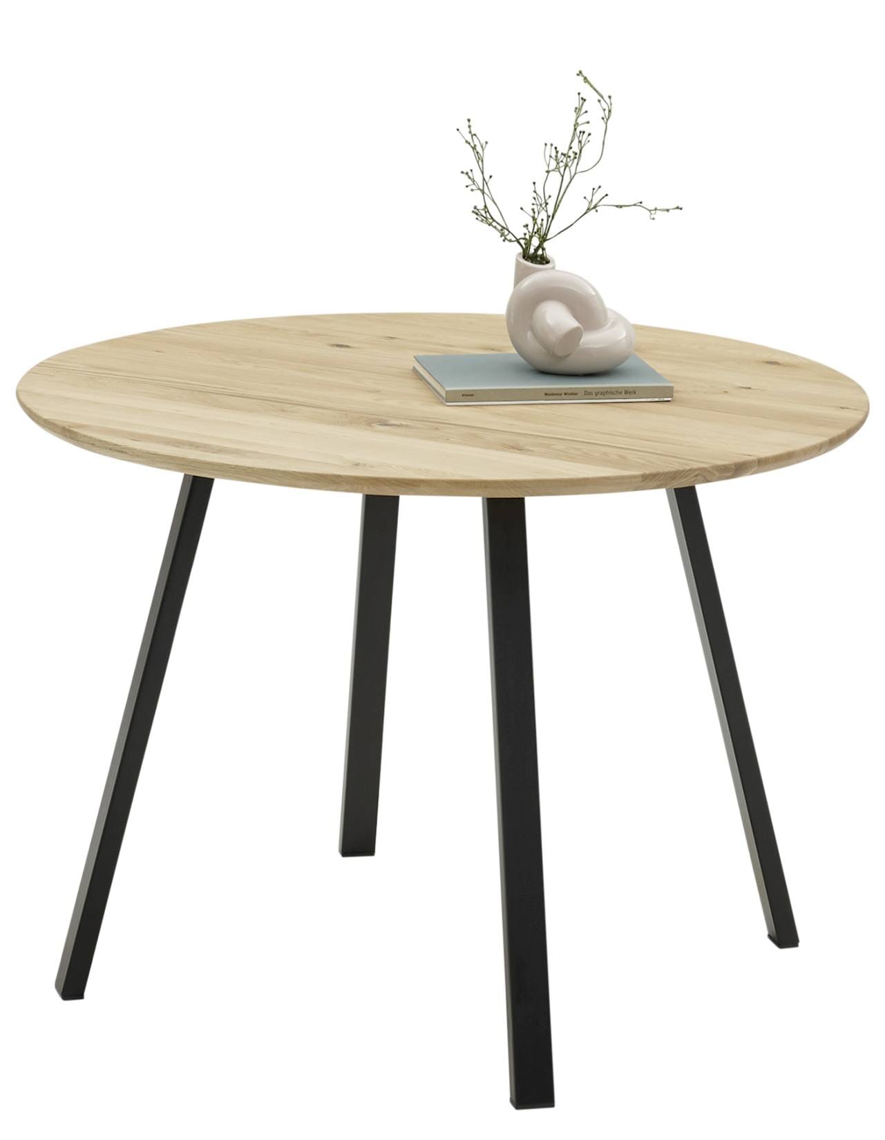 Esstisch NILS Platte rund 110 cm Eiche massiv Füße Metall schwarz