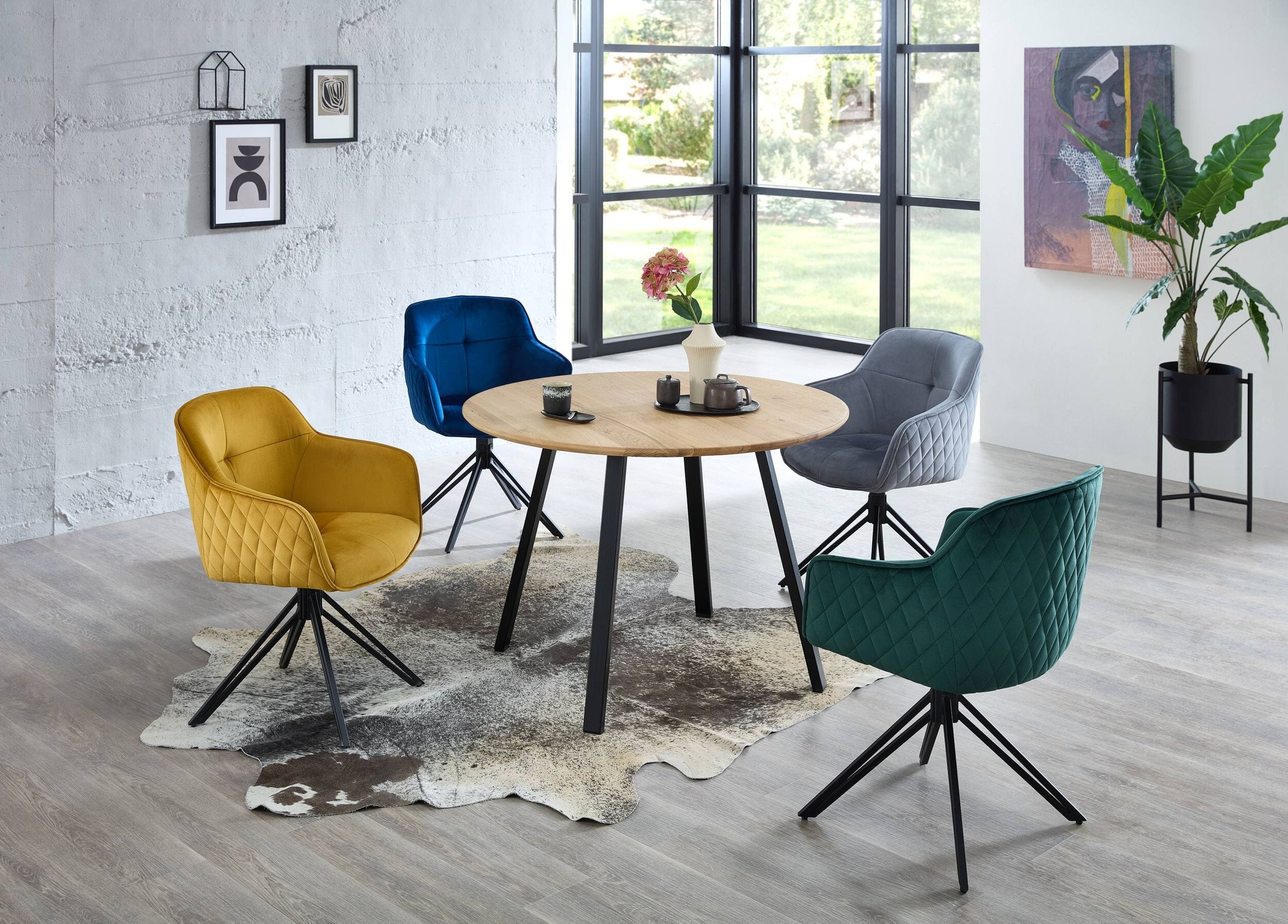 Eine runde Sache ist das und ein Tisch, den Sie für viele Zwecke nutzen können: Der Esstisch NILS erfreut Sie durch seine schöne Kombi, denn hier wurden Eichenholz und Metall vermählt, und das Ergebnis ist ein Tisch mit Spannung und Raffinesse.
