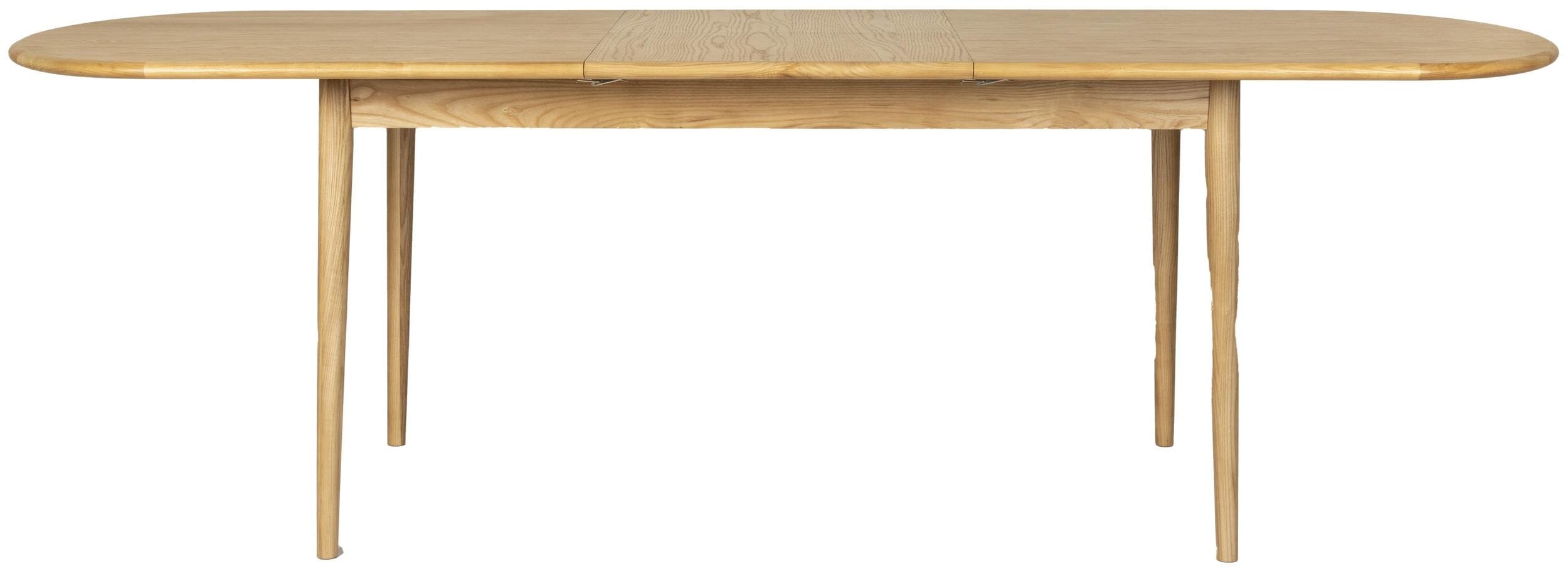 Dieser ausziehbare Twist-Tisch ist perfekt für kleinere Räume, kann aber auch zu einem größeren Tisch umfunktioniert werden, wenn Freunde und Familie zu Besuch kommen. Die natürlichen Holzmaserungen auf der furnierten Tischplatte strahlen Wärme aus und bringen die Natur in Ihr Zuhause. Durch seine Gestaltung im skandinavischen Stil passt der ovale Tisch im attraktiven Eichenfurnier in modern oder klassisch eingerichtete Esszimmer. Er ist vielseitig mit verschiedenen Stuhlvarianten kombinierbar und mit den innen liegenden Butterfly-Einlegeplatten bei Bedarf verlängerbar. Er ist ideal für eine 4-bis 6-köpfige Familie, bietet durch den Auszug aber Platz für bis zu 8 Personen.
