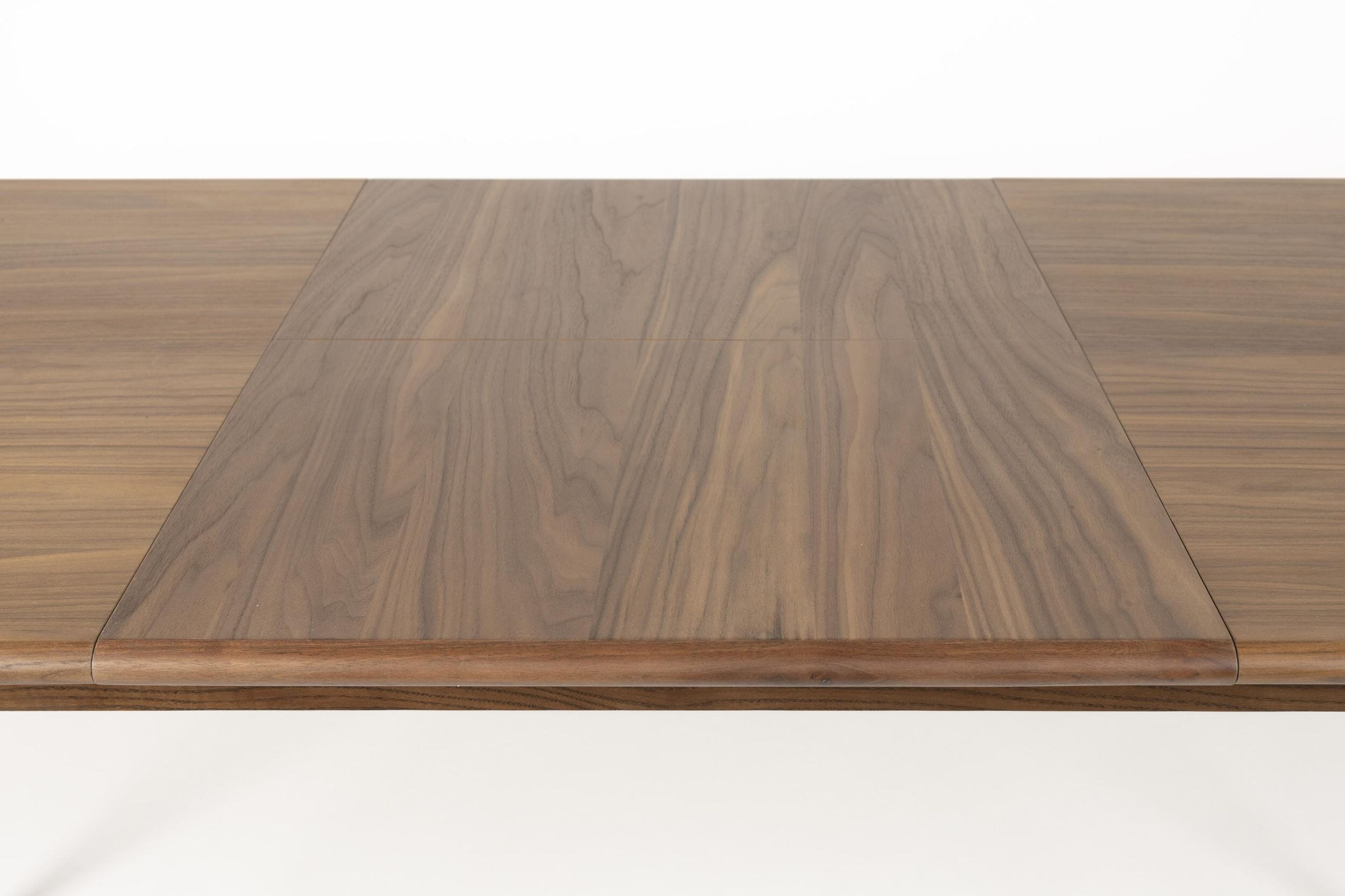 Dieser ausziehbare Twist-Tisch ist perfekt für kleinere Räume, kann aber auch zu einem größeren Tisch umfunktioniert werden, wenn Freunde und Familie zu Besuch kommen. Die natürlichen Holzmaserungen auf der furnierten Tischplatte strahlen Wärme aus und bringen die Natur in Ihr Zuhause. Durch seine Gestaltung im skandinavischen Stil passt der ovale Tisch im attraktiven Walnussfurnier in modern oder klassisch eingerichtete Esszimmer. Er ist vielseitig mit verschiedenen Stuhlvarianten kombinierbar und mit den innen liegenden Butterfly-Einlegeplatten bei Bedarf verlängerbar. Er ist ideal für eine 4-bis 6-köpfige Familie, bietet durch den Auszug aber Platz für bis zu 8 Personen.