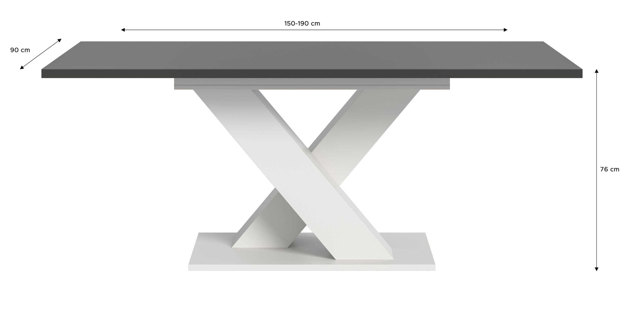 Esstisch Motion ausziehbar, Weiß/Grau, 150-190 cm, X-Fußgestell