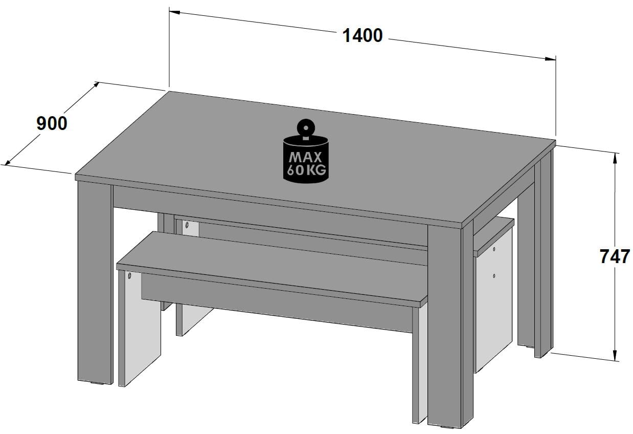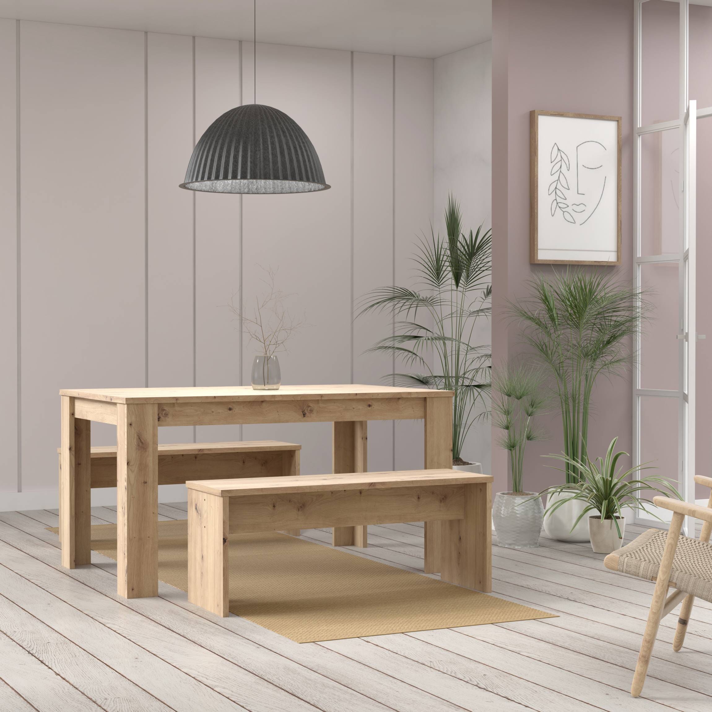 Tischgruppe Esstisch 140 x 90 mit 2 Bänken Dekor Artisan Eiche, Forte