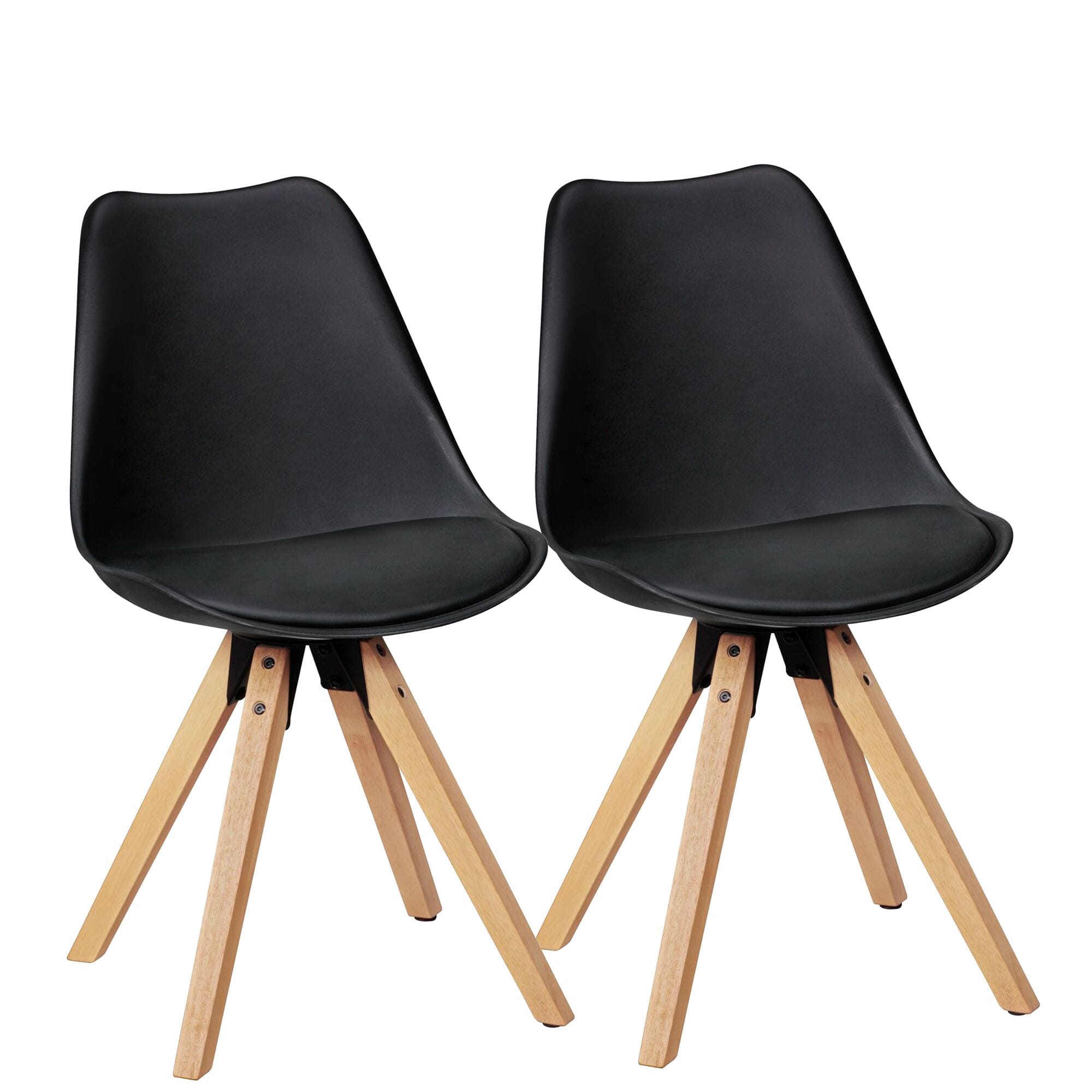 Esszimmerstuhl Set LIMA 2er Kunstleder gepolstert Schwarz Skandinavisch Retro